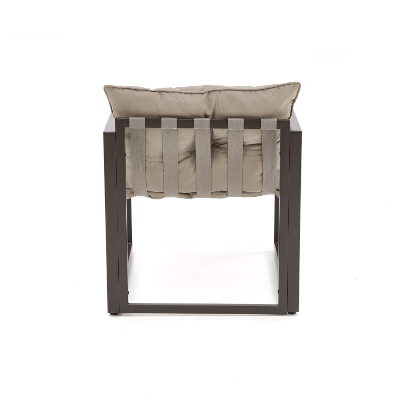 zestaw ogrodowy ( sofa + fotel 2x + ława ), wymiary: 118/74/68/41 cm (sofa), 65/74/68/41 cm (fotel), 75/45/40 cm (ława), materiał: stal malowana proszkowo / szkło / tkanina, kolor: ciemny brąz - cappuccino