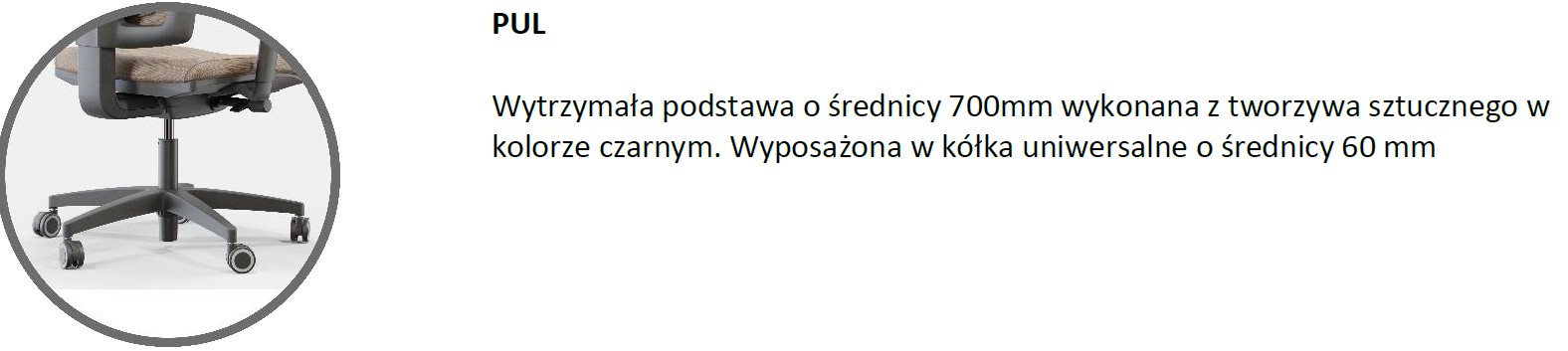 zdjęcia mechanizm synchroniczny MS-APROM-SY Specyfikacja mechanizmu: -mechanizm rozłączny - osobno mechanizm, osobno łącznik oparcia -zsynchronizowana regulacja kąta pochylenia oparcia i siedziska, za pomocą jednej dźwigni/przycisku (zakres pochylenia siedzisko: -1°/+10°; oparcie: 20°) -regulacja natężenia za pomocą pokrętła dolnego -regulacja kolumny gazowej, za pomocą dźwigni/przycisku -możliwość korzystania z mechanizmu w pozycji nie zablokowanej i zablokowanej -blokowanie w 5 pozycjach -antishock - ochrona pleców przed uderzeniem oparcia po zwolnieniu blokady -przesuw siedziska - zewnętrzny (opcja za dopłatą) podłokietniki Do wyboru: regulowane góra - dół miękka nakładka czarne lub regulacja góra-dół w zakresie 75mm przesuw nakładki przód-tył w zakresie 60mm obrót nakładki +/- 30 stopni podstawa Do wyboru: czarna z tworzywa aluminiowa Kółka: twarde do powierzchni miękkich - standard miękkie do powierzchni twardych (dopłata) Oparcie i siedzisko Oparcie i siedzisko wyprofilowane, wykonane z pianki integralnej. Oparcie zostało wyposażone w regulacje: oparcie regulowane na wysokości, podparcie lędźwiowe regulowane w wysokości które umożliwiaja dopasowanie fotela do naszej sylwetki. Siedzisko i oparcie: tapicerowane wg wzornika. tapicerki/siatki oznaczone gwiazdką (*) - wymagają indywidualnego ustalenia minimalnej ilości zamawianych foteli. zagłówek Model fotela dostepny w wersji: bez zagłówka - standard(A) z zagłówkiem stałym - za dopłatą(T) Do wyboru w KONFIGURATORZE Wymiary Fotel APOLLO bez zagłówka Fotel APOLLO z zagłówkiem Atest Fotel posiada Atest badań wytrzymałościowych i bezpieczeństwa użytkowania przez ludzi o masie do 150 kg Montaż Do samadzielnego montażu