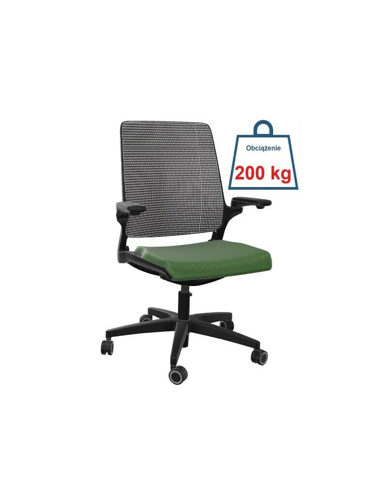 Fotel biurowy obrotowy SMART SW10N - obciążenie do 200 kg/ atest do pracy 24/7 SMART to fotel biurowy obrotowy, który idealnie spełnia wymagania do ergonomicznej pracy zarówno w biurze, jak i w domu, dostosowany jest do potrzeb pracy z urządzeniami przenośnymi jak i do pracy klasycznej. Fotel spełnia takie wymagania użytkowników jak : trwałość - wysokiej jakości materiały gwarantujące długoletnie użytkowanie co gwarantuje GWARANCJA producenta wynosząca 60 miesięcy. nowoczesność - nowoczesny design, intuicyjność - łatwość w ustawieniach fotela, uniwersalność - przeznaczony dla każdego człowieka. Najważniejsze, że fotel został przebadany przez niezależne instytucje atestujące, pod względem ergonomii i wytrzymałości, o czym świadczą wystawione dokumenty takie jak: protokół oceny ergonomicznej oraz atest z badań wytrzymałościowych w zakresie bezpieczeństwa użytkowania do 200 kg oraz pracy 24 h przez 7 dni. Fotel biurowy SMART SW10N - wersja NET DANE TECHNICZNE Oparcie: rama wykonana z tworzywa elastycznego wysokiej jakości w kolorze białym, tapicerowana elastyczną siatką 3D - Runner w kolorze czarnym Oparcie dostosowujące się do Twojej postawy nie ograniczające ruchów Siedzisko: Siedzisko wykonane jest z tworzywa sztucznego i stanowi integralną część całego krzesła. Pokryte jest pianką wylewaną o gęstości 65 kg/m3. Boki siedziska uszyte są z pojedynczych elementów w różnorodnej kolorystyce. Krawędź przednia jest odpowiednio zaokrąglona, aby zwiększyć komfort pracy poprzez zmniejszenie nacisku na część udową. Tapicerowane tkaniną o wysokich parametrach ścieralności. Rodzaj tkaniny i wybór koloru dostepny w konfiguratorze produktu. Wysokość siedziska dostosowujemy za pomocą kolumny gazowej z poduszką powietrzną, aby zwiększyć komfort siedzenia na krześle. Podłokietniki: Innowacyjne regulowane miękkie podłokietniki są zintegrowane z oparciem krzesła. Zamontowane na specjalnym zawiasie kulowym, który umożliwia regulację w zakresie 90° góra-dół i 90° lewo-prawo. Nakładki podłokietników wykonane są z miękkiego tworzywa sztucznego w kolorze czarnym. Podłokietniki pozwalają na pracę przy biurku lub z urządzeniami przenośnymi typu tablet. Mechanizm samoważący obsługiwany za pomocą dźwigni linkowych. Zastosowanie tego mechanizmu pozwala na uźytkowanie fotela obrotowego SMART przez osoby o wadze ciała do 200 kg, co potwierdza odpowiedni atest. Podstawa pięcioramienna PUL wytrzymała podstawa o średnicy 700mm wykonana z tworzywa sztucznego w kolorze białym Kółka uniwersalne fi 60 przeznaczone do twardej/miękkiej powierzchni w kolorze czarnym z białą wstawką Zagłówek tapicerowany opcja dodatkowa za dopłatą - regulowany na wysokość i kąt pochylenia Wymiary Wysokość całkowita: 995 - 1100 mm Wysokość siedziska: 440 - 545 mm Wysokość oparcia: 555 mm Wysokość podłokietników: 655- 760 mm Głębokość całkowita: 550 mm Głębokość siedziska: 470 mm Szerokość ogólna: 680 mm Szerokość siedziska: 505 mm Średnica 5-ramiennej podstawy: 700 mm