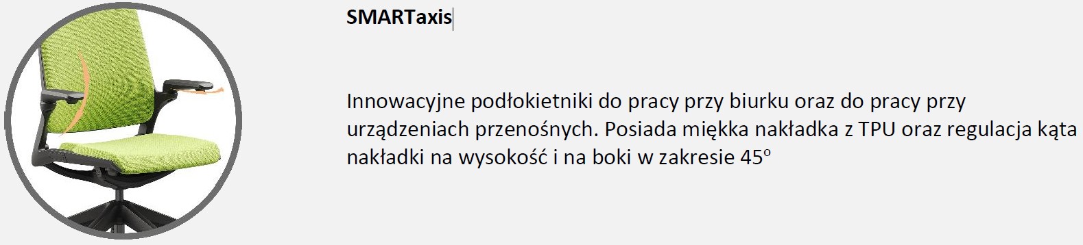| SMART to fotel biurowy obrotowy, który idealnie spełnia wymagania do ergonomicznej pracy zarówno w biurze, jak i w domu, dostosowany jest do potrzeb pracy z urządzeniami przenośnymi jak i do pracy klasycznej. Fotel spełnia takie wymagania użytkowników jak : trwałość - wysokiej jakości materiały gwarantujące długoletnie użytkowanie co gwarantuje GWARANCJA producenta wynosząca 60 miesięcy. nowoczesność - nowoczesny design, intuicyjność - łatwość w ustawieniach fotela, uniwersalność - przeznaczony dla każdego człowieka. Najważniejsze, że fotel został przebadany przez niezależne instytucje atestujące, pod względem ergonomii i wytrzymałości, o czym świadczą wystawione dokumenty takie jak: protokół oceny ergonomicznej oraz atest z badań wytrzymałościowych w zakresie bezpieczeństwa użytkowania do 200 kg oraz pracy 24 h przez 7 dni. |