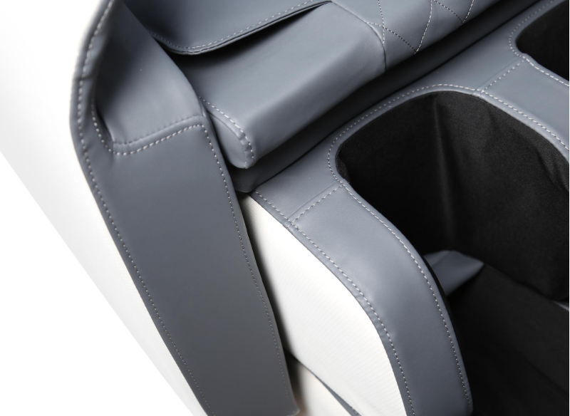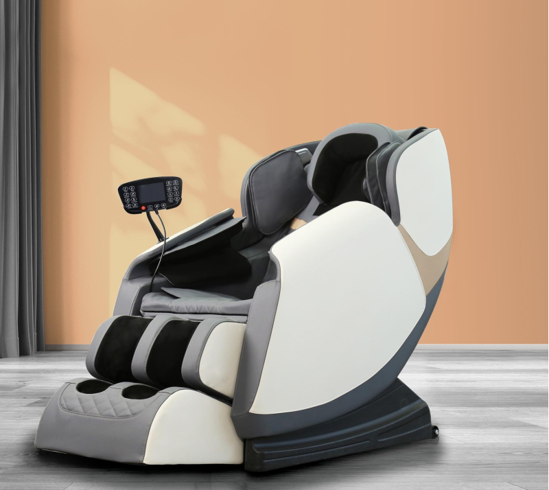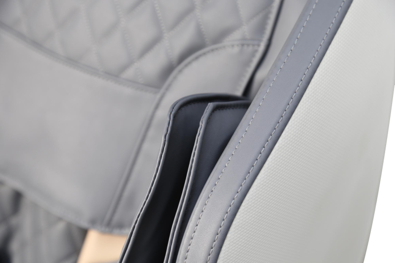 wymiary: 72/140-187/105-85 cm; fotel z funkcją masażu / 20 programów masażu / funkcja podgrzewania / głośniki / ekran dotykowy, materiał: eco skóra, kolory: kremowy - popielaty - złoty