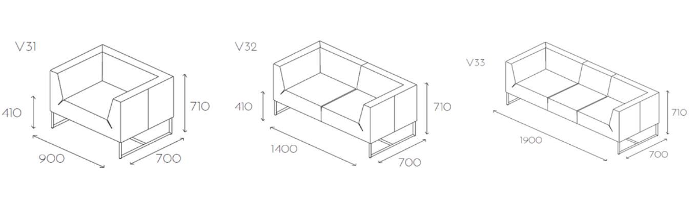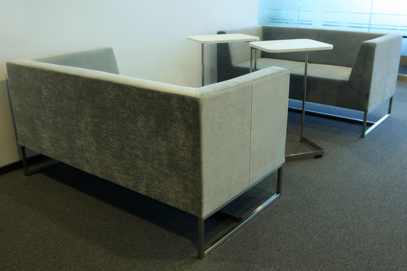 Fotel i sofy o oszczędnej, kubicznej formie, która dobrze wpisuje się w nowoczesną estetykę wnętrz.