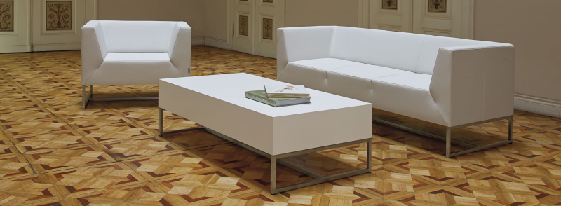 Fotel i sofy o oszczędnej, kubicznej formie, która dobrze wpisuje się w nowoczesną estetykę wnętrz.