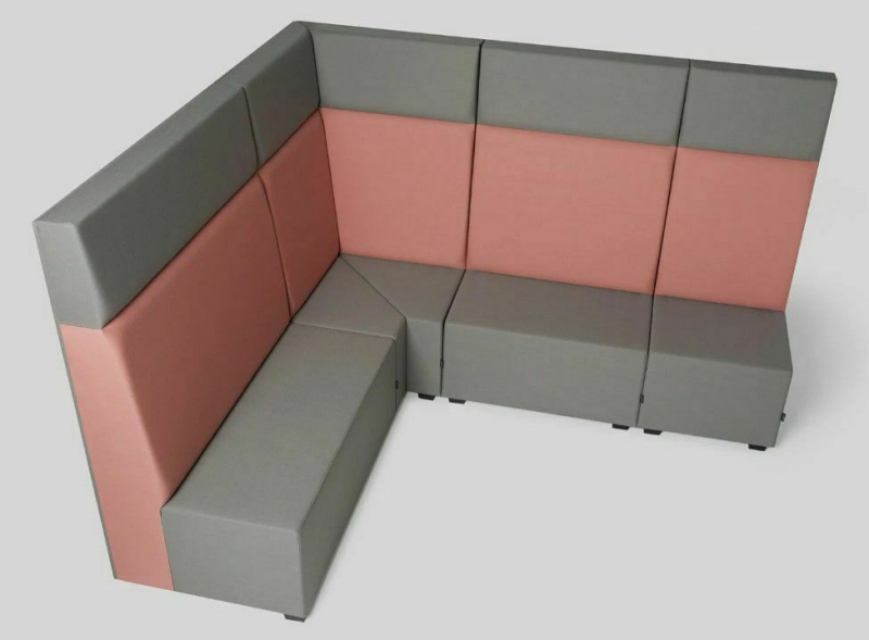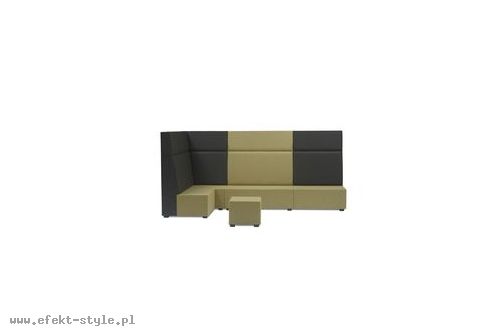OPIS | Ten modułowy mebel pozwala na tworzenie wydzielonych przestrzeni. Element siedziskowy o szerokości 1200 mm z wyraźnym podziałem na część oparcia i zagłówka. |