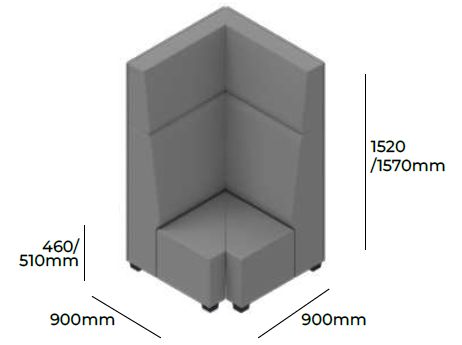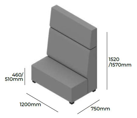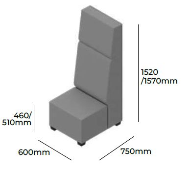 OPIS | Ten modułowy mebel pozwala na tworzenie wydzielonych przestrzeni. Element siedziskowy o szerokości 600 mm z wyraźnym podziałem na część oparcia i zagłówka. |