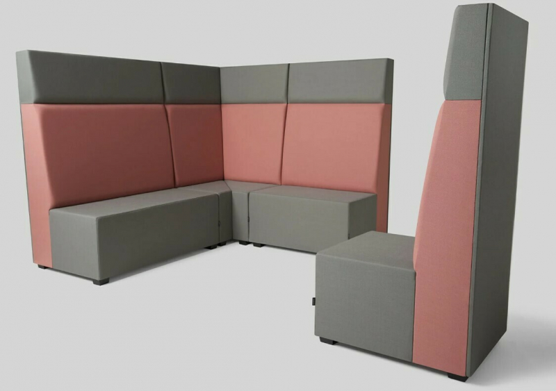 OPIS | Ten modułowy mebel pozwala na tworzenie wydzielonych przestrzeni. Element narożnikowy z wyraźnym podziałem na część oparcia i zagłówka. |