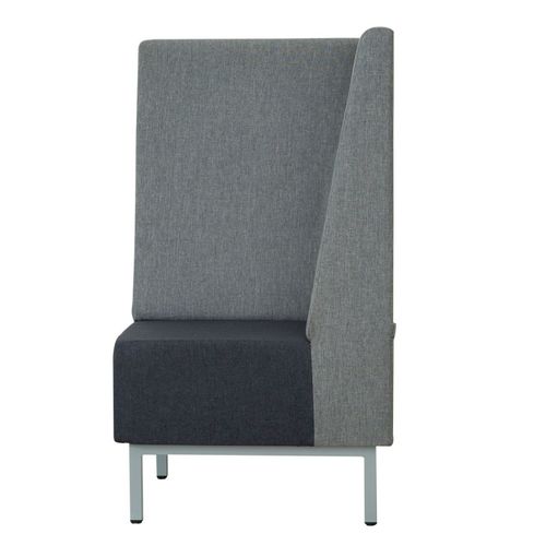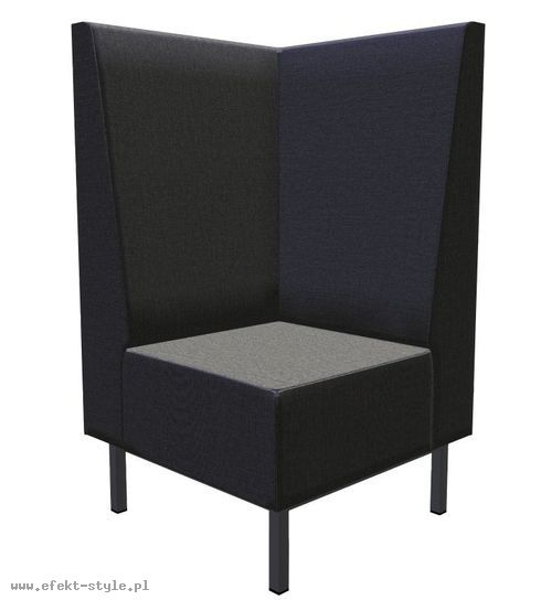 OPIS | Składający się z elementów prostych i narożnikowych system mebli z wysokimi oparciami, pozwalający aranżować wydzieloną strefę do rozmów lub relaksu. Element narożniowy na stelażu metalowym malowanym proszkowo G680x680 MAL, tworzącym ramkę pod siedziskiem, wysokość stelaża metalowego 200 mm. |