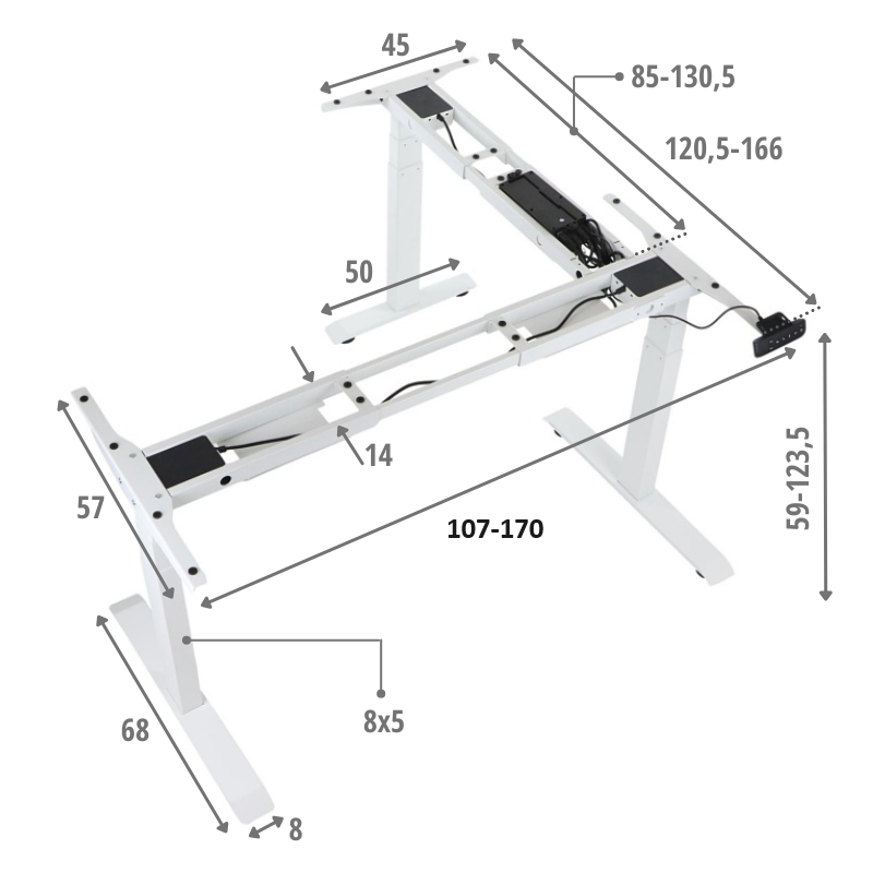 elektryczna regulacja wysokości w zakresie 59-123,5 cm
