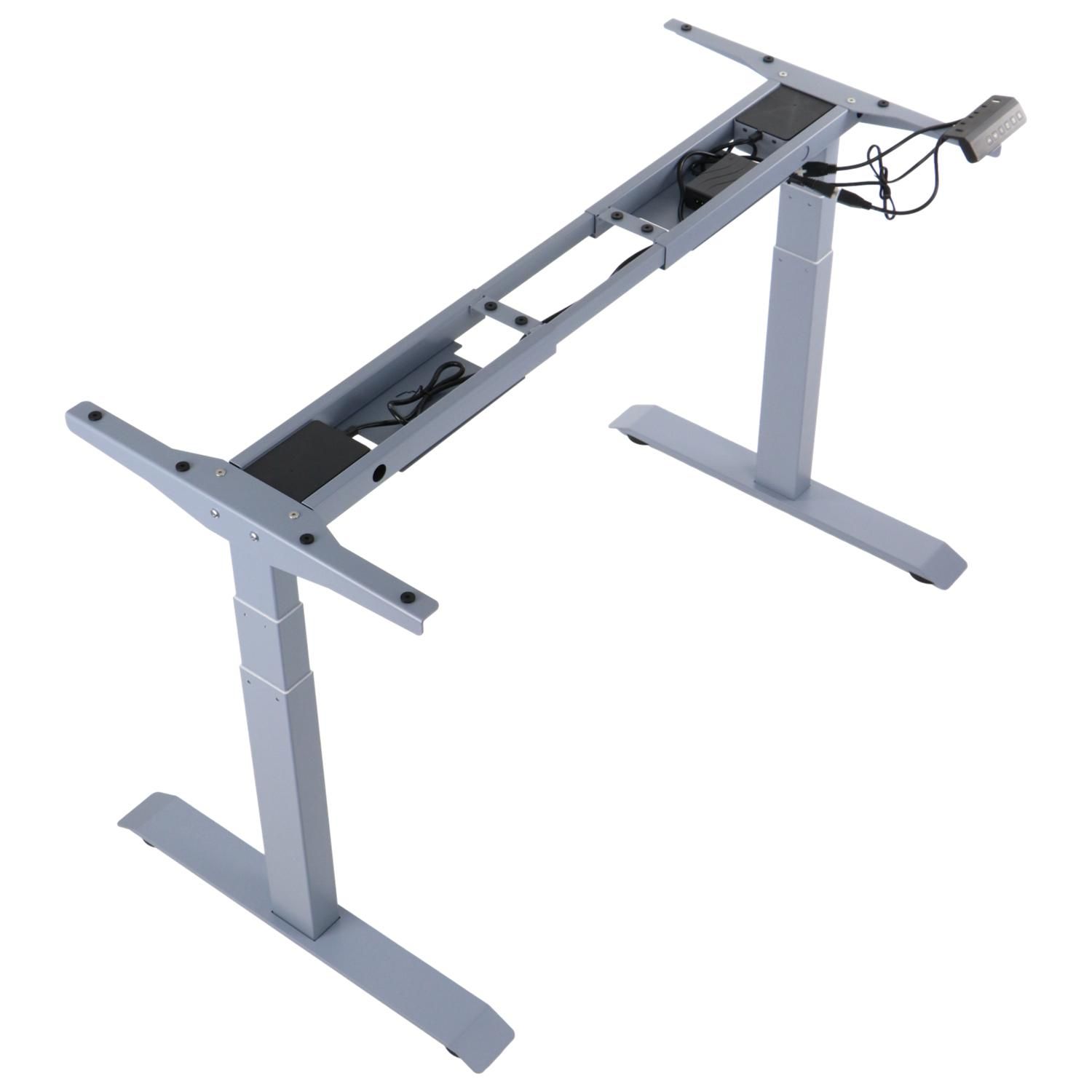 Stelaż PRATO 04-2T/W z elektryczną regulacją wysokości w zakresie 69-117 cm kolor biały/ 2-silnikowyStelaże elektryczne to idealne rozwiązanie dla osób, które chcą zadbać o swoje zdrowie i dobre samopoczucie. Dzięki niemu można regulować wysokość biurka, co pozwala na zmianę pozycji ciała i uniknięcie bólu pleców, szyi i ramion.W dzisiejszych czasach, kiedy większość ludzi spędza wiele godzin przed komputerem, ważne jest, aby zadbać o swoje zdrowie i dobre samopoczucie. Oprócz ergonomicznego krzesła obrotowego, warto zwrócić uwagę na ergonomiczne biurko, które pozwoli na łatwą zmianę pozycji ciała podczas pracy i uniknięcie bólu pleców. Taką możliwość daje nam stelaż wyposażony w automatyczną regulację wysokości oraz inne funkcje takie jak: system antykolizyjny, czy też możliwość zaprogramowania kilku pozycji wysokości. Dane techniczne stelaża:elektryczna regulacja wysokości w zakresie 69-117 cmręczna regulacja długości w zakresie 105-170 cmnoga 2-segmentowaprędkość podnoszenia 30 mm/smaksymalne obciążenie stelaża 100 kg przy równomiernym obciążeniu blatupamięć 3 pozycji wysokościsystem antykolizyjny - po napotkaniu przeszkody napęd automatycznie się wyłączyfunkcja blokady przyciskówzasilanie 100-240 Vzasilanie silnika 24Vstopki poziomującemalowany proszkowo w kolorze białymWymiary: Uwaga:Produkt do samodzielnego montażu.Gwarancja 24 miesiąceWyposażenie opcjonalne (do kupienia osobno) - poziomy kanał kablowy, zawieszka na komputer, metalowa szuflada podblatowa - dostępne na naszym sklepie.