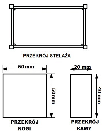 Opis | Stelaż do blatu prostokątnego wykonany: