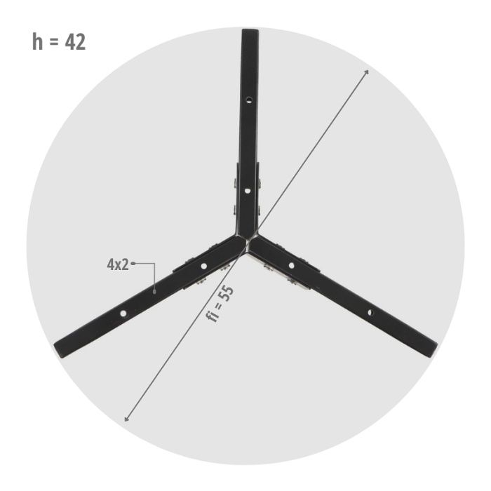 Podstawa do stolika EF-SH-5001-5/L/B - czarna - wysokość 57,5 cm fi 45 cm Wykonanie wysokość 57,5 cm element dolny o średnicy 45 cm element dolny wykonany z blachy o gr. 7 mm, malowanej proszkowo noga o średnicy 75 mm wykonana ze stali malowanej proszkowo, grubość ścianki 1,2 mm element górny wykonany z blachy tłoczonej 30x30 cm o gr. 3 mm element górny wyposażony w 8 otworów montażowych o średnicy 5 mm regulowane stopki podstawa skręcana, dostarczana w elementach waga: 11,5 kg Kolor -czarny; Uwagi Podstawa do stolika, cena nie obejmuje blatu. Gwarancja 24-miesięczna. System od "drzwi do drzwi" dla Państwa pełnego komfortu. System "door to door" - z ang - od drzwi do drzwi Termin "door to door" wg WIKIPEDII: " sposób realizacji naprawy urządzenia, który polega na przesłaniu pocztą kurierską uszkodzonego sprzętu do serwisu (na koszt serwisu). Naprawione urządzenie wraca następnie przesyłką kurierską do właściciela także na koszt serwisu"