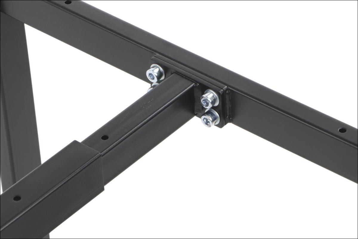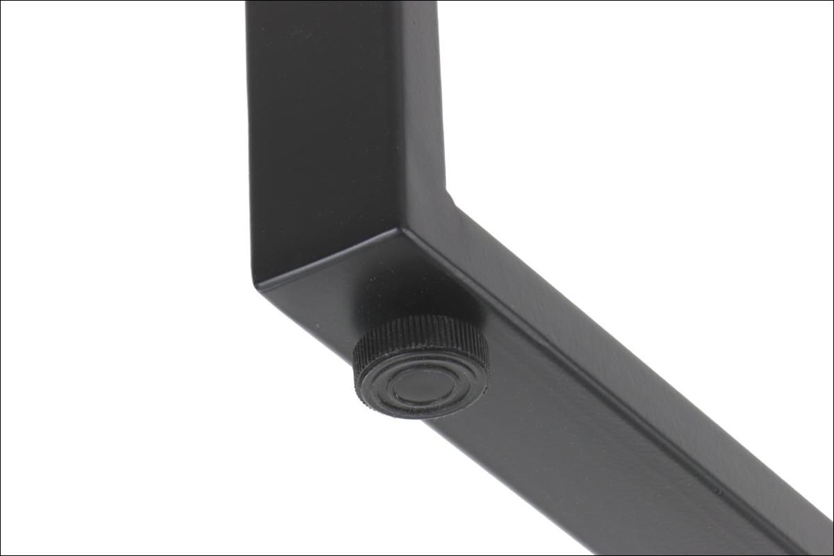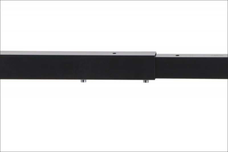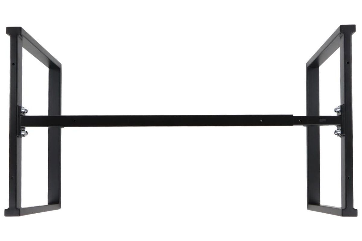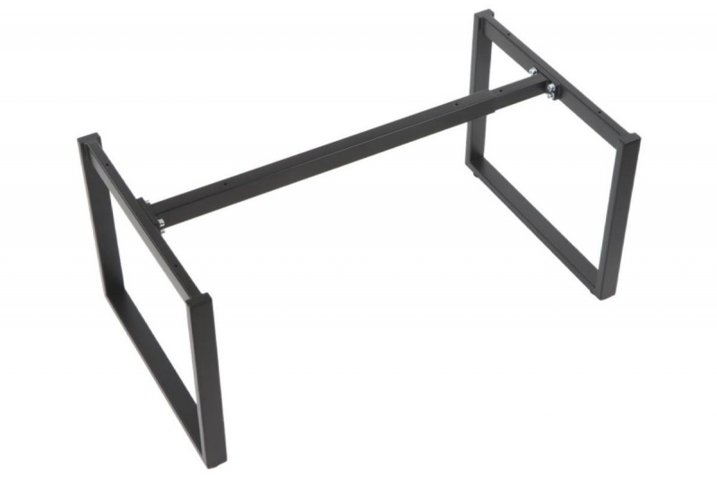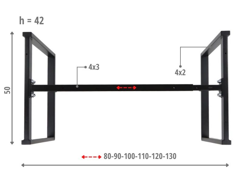 Stelaż ramowy do stolika NY-L04 czarny, L=80-130 cm, wysokość h=42 cm Dane techniczne stelaża: regulacja długości w zakresie 80-130 cm - co 10 cm stelaż skręcany, malowany proszkowo kolor czarny przekrój belki: 40x30 mm przekrój nóg: 40x20 mm wysokość 42 cm grubości ścianek: nogi - 1,2 mm, belki - 1,2 mm nogi zakończone regulowaną stopką tworzywową Wymiary: 80-130 x 50 x 42 cm