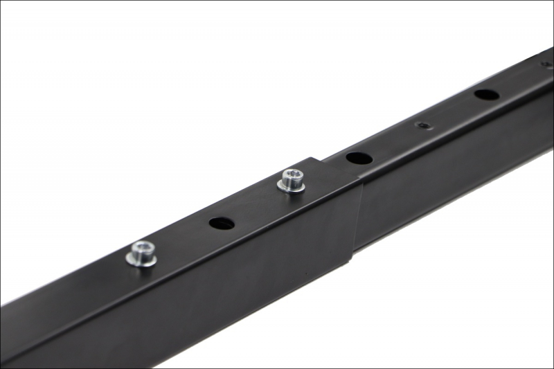 Stelaż ramowy do stolika NY-L04 czarny, L=80-130 cm, wysokość h=42 cm Dane techniczne stelaża: regulacja długości w zakresie 80-130 cm - co 10 cm stelaż skręcany, malowany proszkowo kolor czarny przekrój belki: 40x30 mm przekrój nóg: 40x20 mm wysokość 42 cm grubości ścianek: nogi - 1,2 mm, belki - 1,2 mm nogi zakończone regulowaną stopką tworzywową Wymiary: 80-130 x 50 x 42 cm