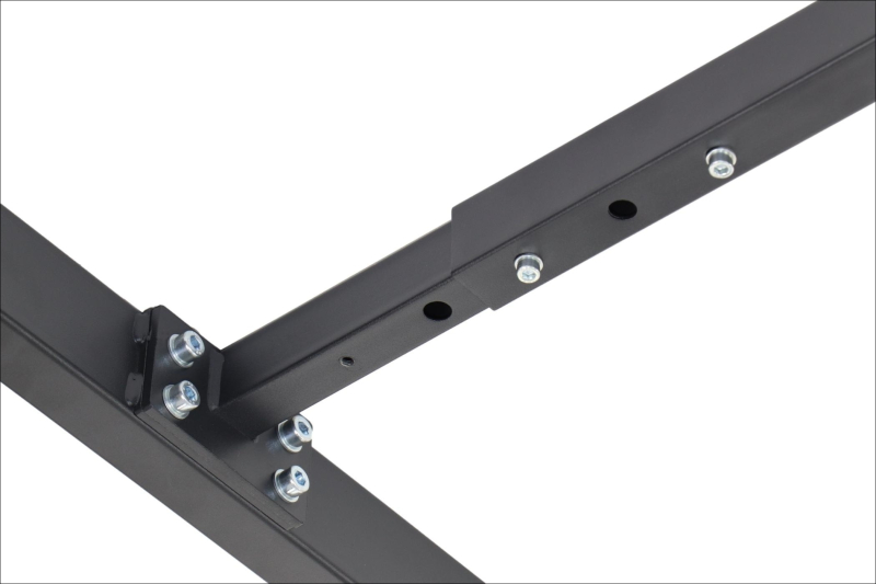 Stelaż ramowy do stolika NY-L04 czarny, L=80-130 cm, wysokość h=42 cm Dane techniczne stelaża: regulacja długości w zakresie 80-130 cm - co 10 cm stelaż skręcany, malowany proszkowo kolor czarny przekrój belki: 40x30 mm przekrój nóg: 40x20 mm wysokość 42 cm grubości ścianek: nogi - 1,2 mm, belki - 1,2 mm nogi zakończone regulowaną stopką tworzywową Wymiary: 80-130 x 50 x 42 cm