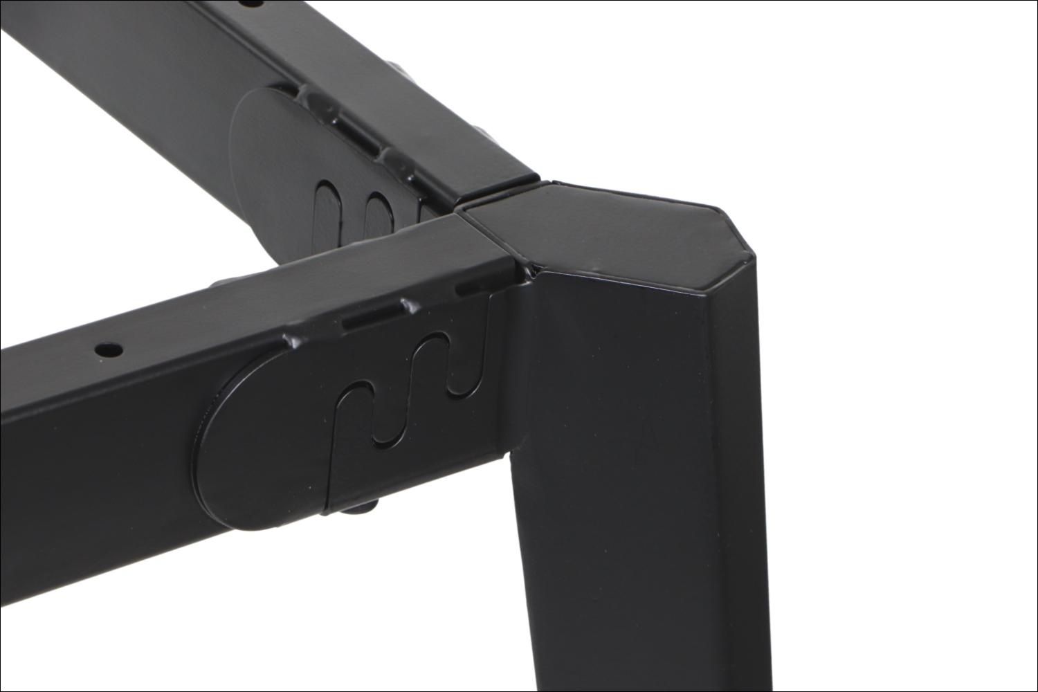Stelaż ramowy do stolika NY-L04 czarny, L=80-130 cm, wysokość h=42 cm Dane techniczne stelaża: regulacja długości w zakresie 80-130 cm - co 10 cm stelaż skręcany, malowany proszkowo kolor czarny przekrój belki: 40x30 mm przekrój nóg: 40x20 mm wysokość 42 cm grubości ścianek: nogi - 1,2 mm, belki - 1,2 mm nogi zakończone regulowaną stopką tworzywową Wymiary: 80-130 x 50 x 42 cm