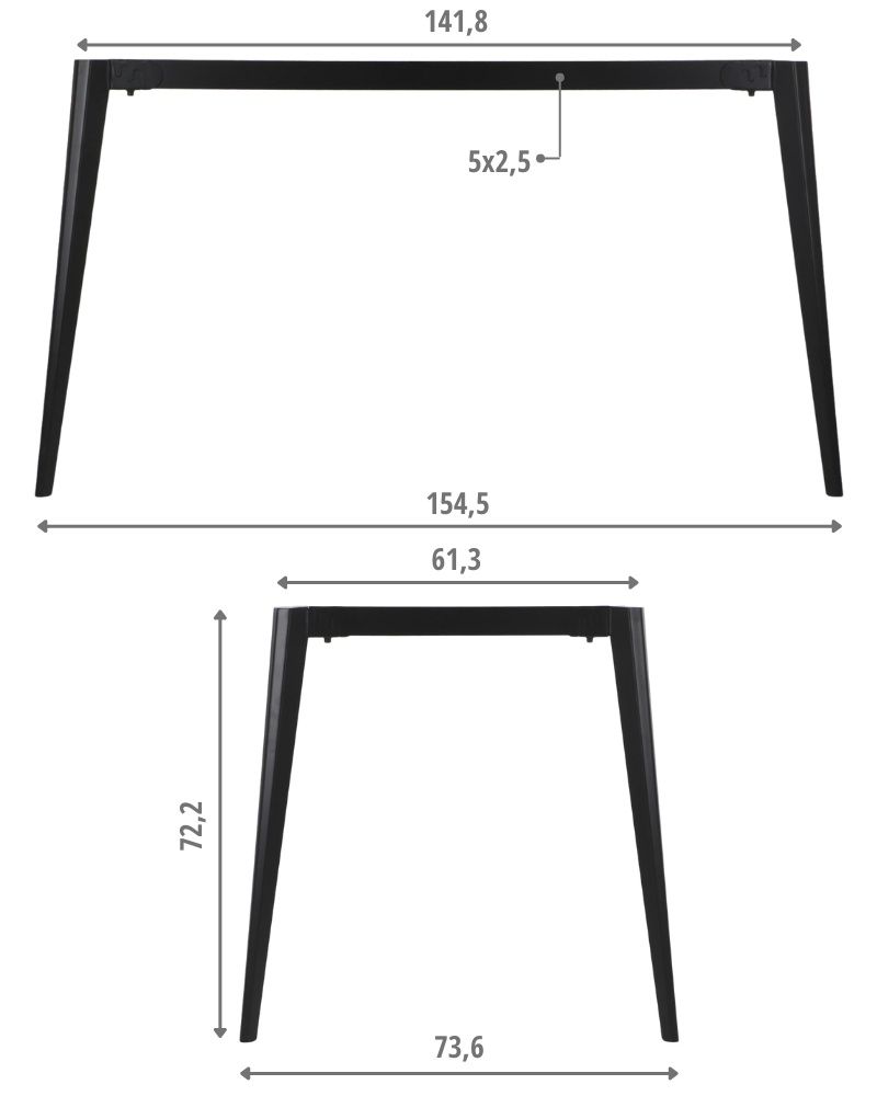 Stelaż do stołu i biurka 57/OC 156x66 cm, nogi okrągłe fi 5 cm - CZARNY Dane techniczne: przystosowany do blatów płytowych dostępny w różnych wymiarach i kolorach rama + 4 nogi o średnicy 5 cm grubości ścianek: nogi - 1,8 mm, belki - 1,3 mm stelaż skręcany, malowany proszkowo nogi wyposażone są w regulowane stopki w zakresie 1 cm KOLORYSTYKA STELAŻA - czarnym: w zestawie śruby do montażu blatu o grubości od 25 mm; Wymiary Długość: 156 cm Szerokość: 66 cm Wysokość: 72,5 cm Stelaże można zastosować do blatów o wymiarach: od 80x80 cm do 200x80 cm. Kolor Malowany proszkowo w kolorze czarnym. Uwagi Stelaż do biurka lub stołu konferencyjnego, cena nie obejmuje blatu. Stelaż do samodzielnego montażu. Gwarancja 24-miesięczna. System od "drzwi do drzwi" dla Państwa pełnego komfortu. System "door to door" - z ang - od drzwi do drzwi Termin "door to door" wg WIKIPEDII: " sposób realizacji naprawy urządzenia, który polega na przesłaniu pocztą kurierską uszkodzonego sprzętu do serwisu (na koszt serwisu). Naprawione urządzenie wraca następnie przesyłką kurierską do właściciela także na koszt serwisu"