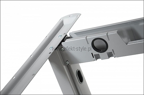 Stelaż składany do stołu i biurka 24/A-P aluminium 156x76 cm - wykonanie: blacha stalowa tłoczona, malowana proszkowo; - wyposażony w regulowane stopki poziomujące; - przekrój profili 3x3 cm; - kolor aluminium (RAL 7040); - w zestawie śruby do montażu blatu o grubości od 25 mm; Wymiary 156x76 cm Gwarancja Stelaż do biurka lub stołu konferencyjnego, cena nie obejmuje blatu. Stelaż do samodzielnego montażu. Gwarancja 24-miesięczna. System od "drzwi do drzwi" dla Państwa pełnego komfortu. System "door to door" - z ang - od drzwi do drzwi Termin "door to door" wg WIKIPEDII: " sposób realizacji naprawy urządzenia, który polega na przesłaniu pocztą kurierską uszkodzonego sprzętu do serwisu (na koszt serwisu). Naprawione urządzenie wraca następnie przesyłką kurierską do właściciela także na koszt serwisu" Widok stelaża z blatem: