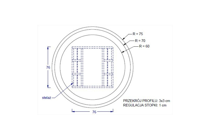 Stelaż do stołu i biurka 57/OA 116x76 cm, nogi okrągłe fi 5 cm - ALUMINIUM Dane techniczne: przystosowany do blatów płytowych dostępny w różnych wymiarach rama + 4 nogi o średnicy 5 cm grubości ścianek: nogi - 1,8 mm, belki - 1,3 mm stelaż skręcany, malowany proszkowo nogi wyposażone są w regulowane stopki w zakresie 1 cm KOLORYSTYKA STELAŻA - aluminium (RAL 7040): w zestawie śruby do montażu blatu o grubości od 25 mm: Wymiary Długość: 116 cm Szerokość: 76 cm Wysokość: 72,5 cm Stelaże można zastosować do blatów o wymiarach: od 70x70 cm do 200x80 cm. Kolor Malowany proszkowo w kolorze aluminium. Uwagi Stelaż do biurka lub stołu konferencyjnego, cena nie obejmuje blatu. Stelaż do samodzielnego montażu. Gwarancja 24-miesięczna. System od "drzwi do drzwi" dla Państwa pełnego komfortu. System "door to door" - z ang - od drzwi do drzwi Termin "door to door" wg WIKIPEDII: " sposób realizacji naprawy urządzenia, który polega na przesłaniu pocztą kurierską uszkodzonego sprzętu do serwisu (na koszt serwisu). Naprawione urządzenie wraca następnie przesyłką kurierską do właściciela także na koszt serwisu"