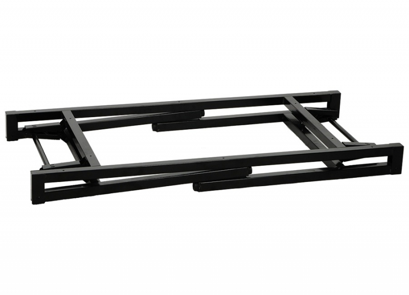 Stelaż ramowy do stolika NY-L04 czarny, L=80-130 cm, wysokość h=42 cm Dane techniczne stelaża: regulacja długości w zakresie 80-130 cm - co 10 cm stelaż skręcany, malowany proszkowo kolor czarny przekrój belki: 40x30 mm przekrój nóg: 40x20 mm wysokość 42 cm grubości ścianek: nogi - 1,2 mm, belki - 1,2 mm nogi zakończone regulowaną stopką tworzywową Wymiary: 80-130 x 50 x 42 cm