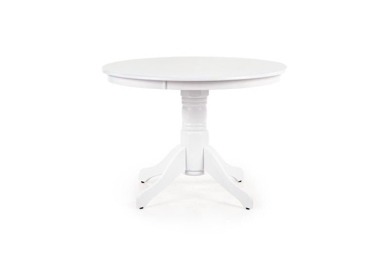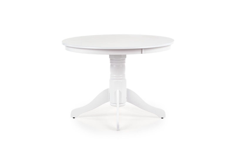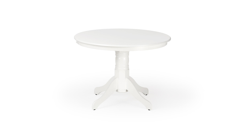 wymiary: fi106/75 cm, materiał: blat - MDF lakierowany, nogi - drewno lite (kauczukowe), kolor: biały