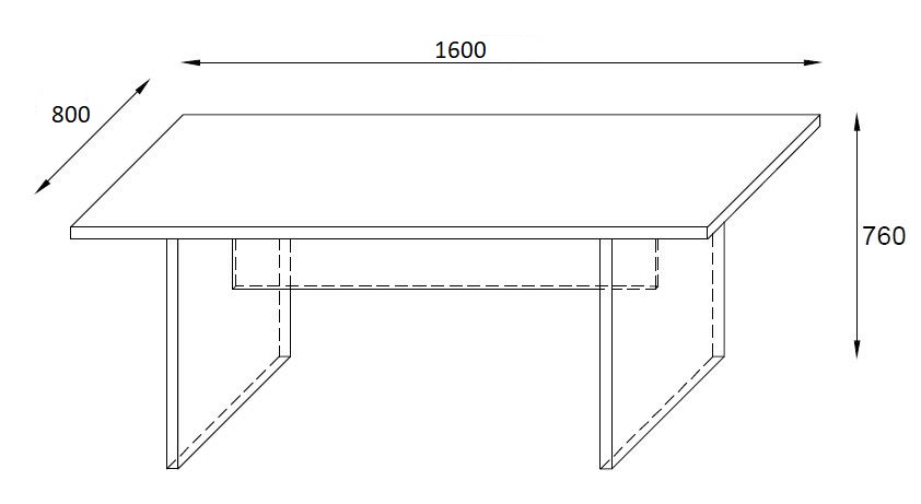 OPIS TECHNICZNY: | Stół konferencyjny na podstawie płytowej, blat i nogi wykonane są z płyty melaminowanej obustronnie o klasie higieniczności E1, o grubości 36 mm. Krawędź blatu wykończona PCV o grubości 2 mm. |