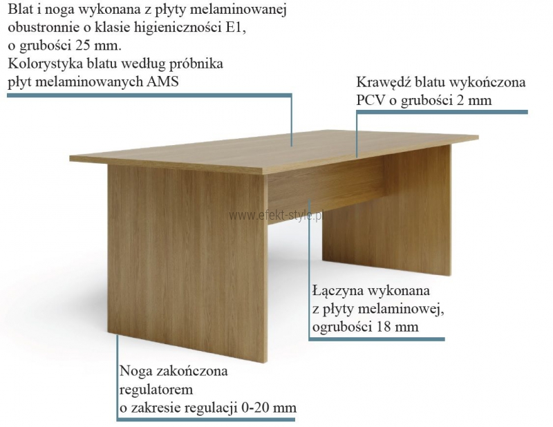 OPIS TECHNICZNY: | Blat i noga wykonana z płyty melaminowanej obustronnie o klasie higieniczności E1, o grubości 25 mm. |