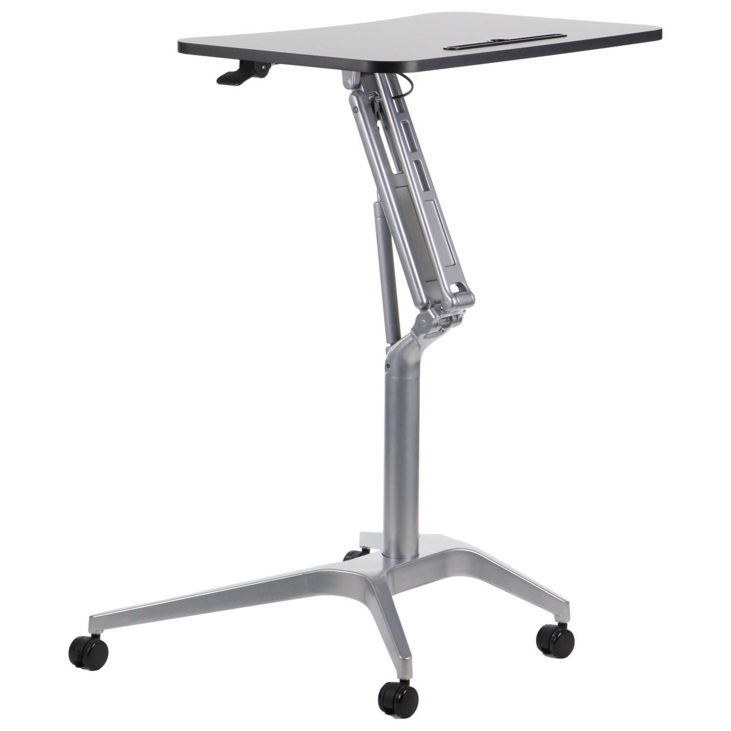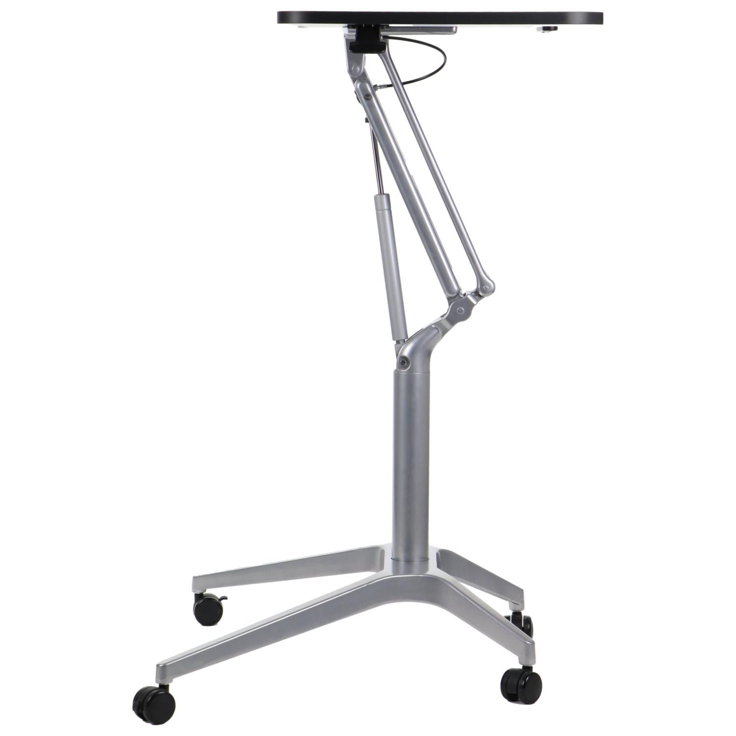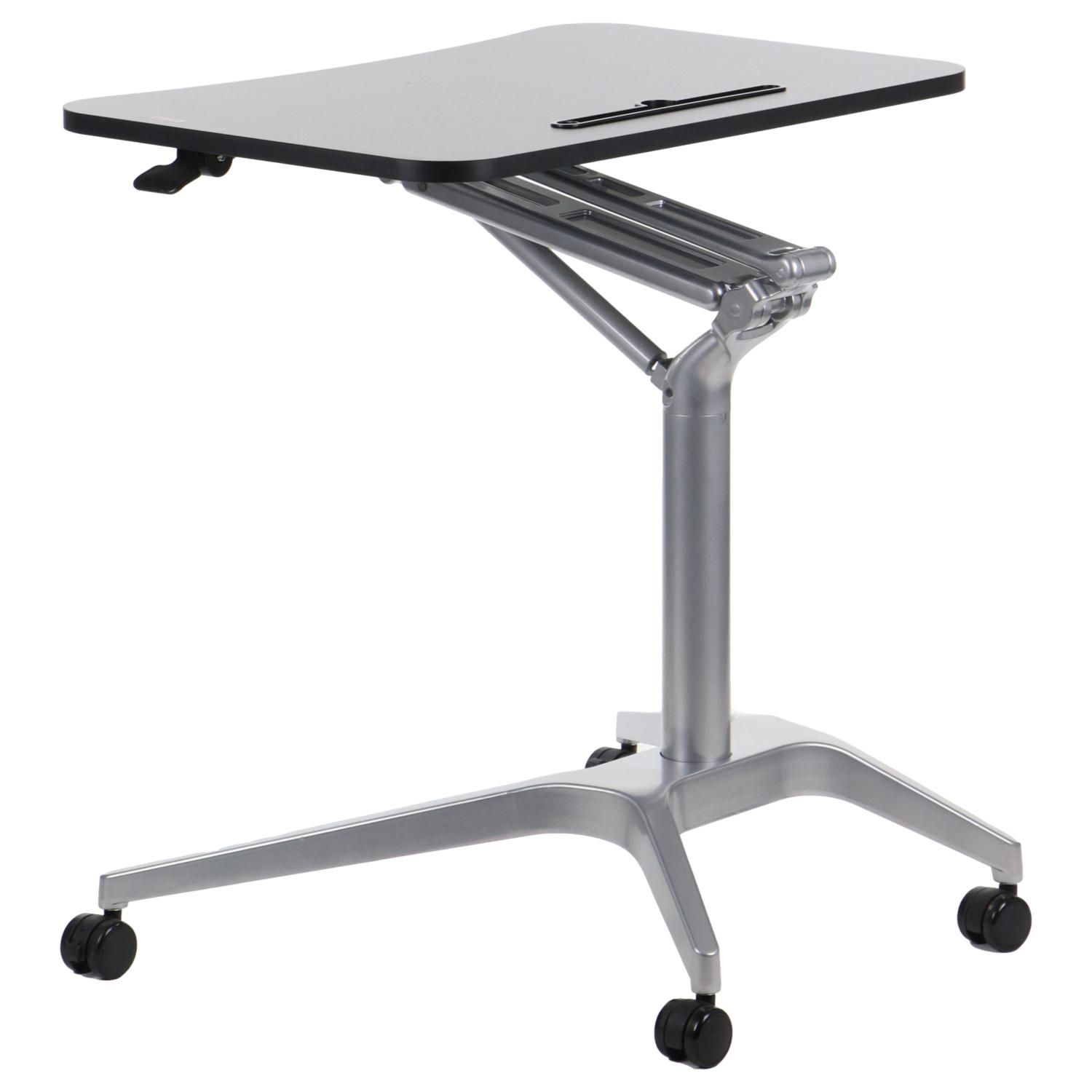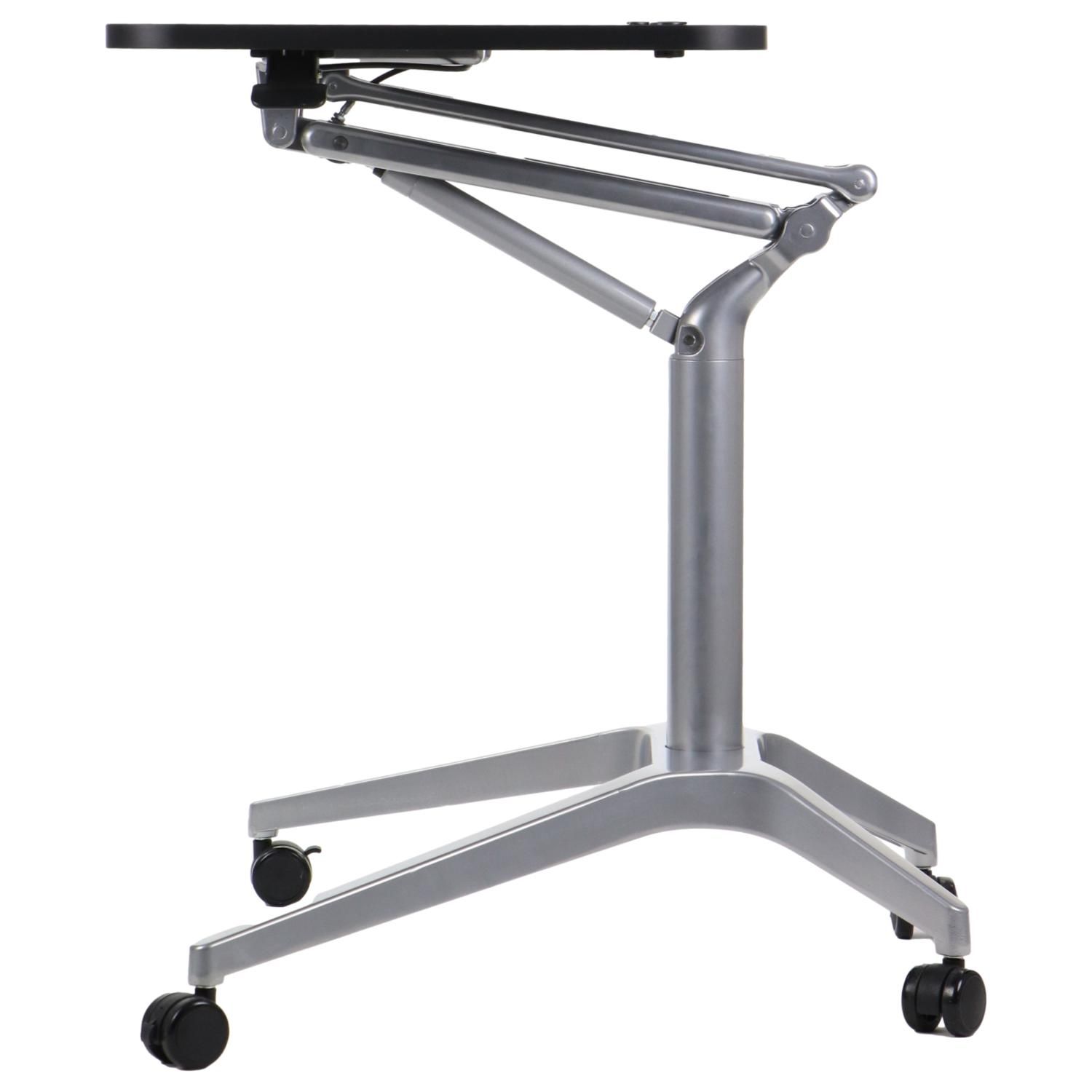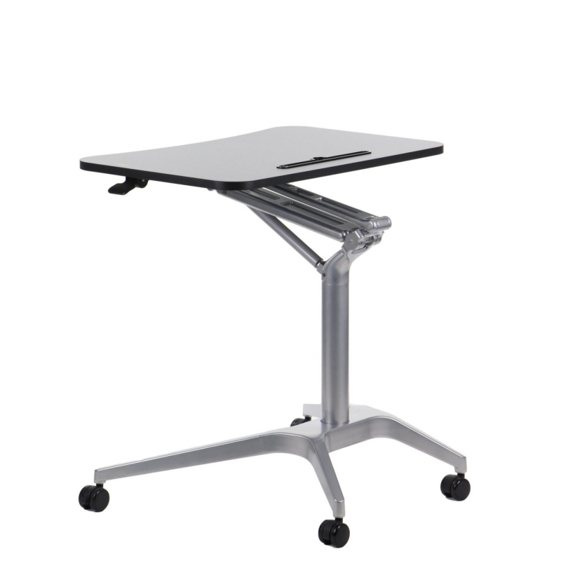 Stolik mobilny z regulacją wysokości SH-A10 czarny/czarny Dane techniczne stolika: Szczegóły wykonania - zdjęcia regulowana wysokość w zakresie 73,5-104 cm podstawa wyposażona w 4 kółka, w tym 2 przednie z hamulcem blat z płyty laminowanej o wymiarach 72x48 cm z miejscem na przybory do pisania regulowane stopki stolik skręcany, dostarczany w elementach wyrób przeznaczony do użytkowania wewnątrz suchych pomieszczeń Kolorystyka : stelaż kolor czarny, blat - kolor czarny Wymiary: Towar do samodzielnego montażu - instrukcja dołączona do przesyłki. Gwarancja 24 miesiące