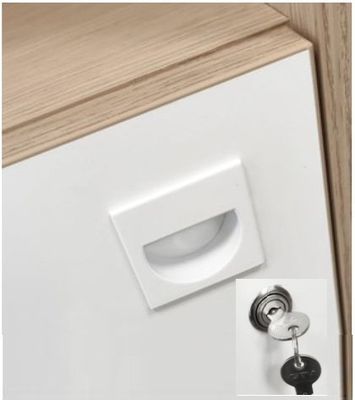 Kontener do lady z szufladą i szafką, typ D Dane techniczne Wykonany z płyty laminowanej 18mm, obrzeże oklejone PCV. Wymiary (WxSxG) 560x400x500 mm. Górna szuflada i szafka zamykane na zamek. Do zestawu można dokupić lady recepcyjne z kolekcji PREMIO - wszystkie meble będą wykonane w tej samej kolorystyce i będą stanowiły całość wyposażenia biura. Kolorystyka płyty meblowej do wyboru. Wyboru dokonujemy w konfiguracji modelu, która znajduje się powyżej. Certyfikat Regał posiada certyfikat dopuszczający do użytkownia w jednostkach oświatowych (certyfikat COBRABID). Terminy Towar na zamówienie. Produkcja około 4-6 tygodni. Gwarancja 24 miesiące