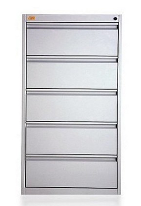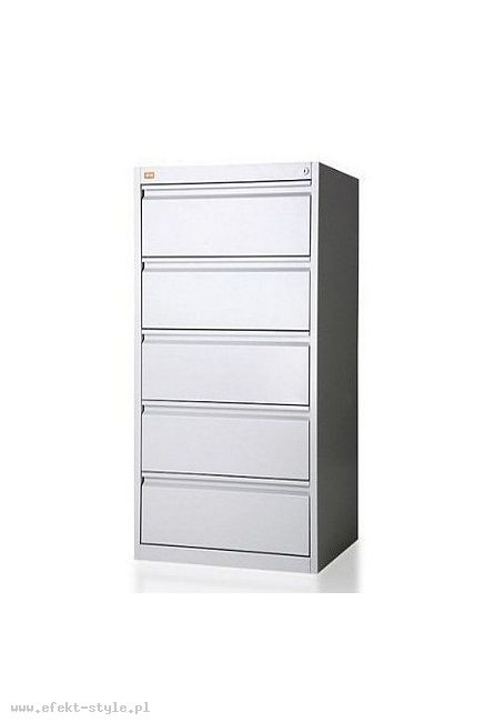 OPIS: | Pięcioszufladowa szafa przystosowana do przechowywania kopert formatu B-5 w poziomie. Szuflada posiada przegrodę umożliwiającą ułożenie dwóch rzędów kopert. Szafa wykonana jest z blachy czarnej o grubości 0,6 - 2 mm, malowana farbami proszkowymi (epoksydowo-poliestrowymi). Szuflady przesuwają się po prowadnicach teleskopowych z blokadą zabezpieczającą przed wypadnięciem. Całość zamykana jednym centralnym zamkiem. Maksymalne obciążenie szuflady: 80 kg. Szafa posiada blokadę pozwalającą na wysunięcie tylko jednej szuflady, co zachowuje jej stabilność. | |