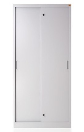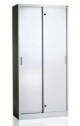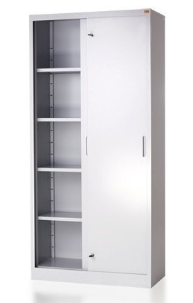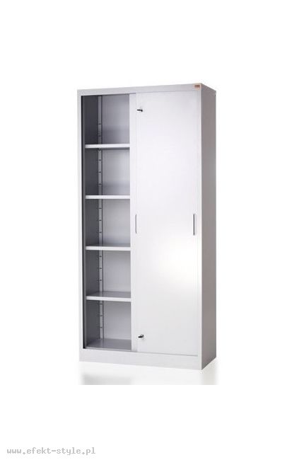 OPIS: | Szafa biurowa wyposażona w system drzwi przesuwnych znajduje szerokie zastosowanie w niewielkich pomieszczeniach, gdzie nie ma miejsca na otwieranie drzwi skrzydłowych. Wyposażona jest w cztery półki przestawne co 90 mm. Wykonana z blachy czarnej o grubości 0.8 mm - 1.5 mm, malowana farbami proszkowymi (epoksydowo-poliestrowymi) w kolorze RAL 7035. Zamykana zamkiem wciskanym - krzywkowym znajdującym się centralnie. Udźwig półki: 50 kg. | |