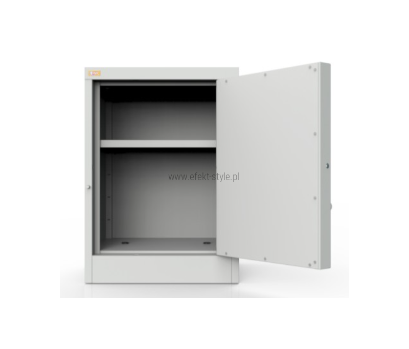 OPIS: | Wzmocniona szafa biurowa przeznaczona jest do przechowywania dokumentów niejawnych. Posiada jedno skrzydło drzwi uchylnych zawieszone na zawiasach kołkowych. Wyposażona jest w 1 półkę przestawną co 90 mm. Wykonana z blachy czarnej o grubości 1 mm, malowana farbami proszkowymi (epoksydowo-poliestrowymi) w kolorze RAL 7035. Zamykana zamkiem kluczowym mechanicznym klasy A (wg normy EN 1300) Typ 2 (wg Rozporządzenia Rady Ministrów z dnia 29 maja 2012 r.), który zabezpiecza przed działaniem destrukcyjnym w tym przed przewierceniem, ryglującym w 3 punktach. Szafa posiada w dnie dwa otwory do zamocowania do podłogi. Drzwi wyposażone są w kołki do plombowania. Udźwig półki: 50 kg. | |