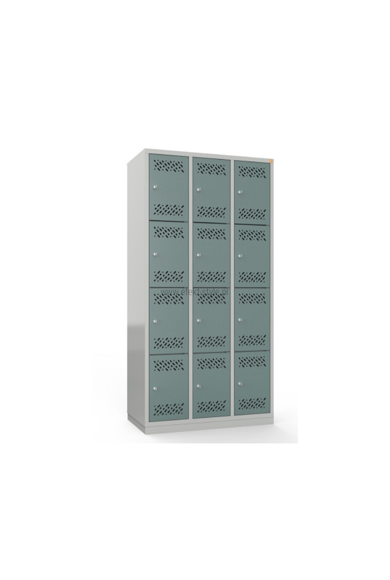 OPIS: | Skrytki rozmieszczone są w trzech kolumnach po cztery rzędy. W każdej ze skrytek umieszczona jest półka na przybory szkolny. W drzwiach skrytek wykonane są otwory wentylacyjne. Szafa wykonana jest z blachy czarnej o grubości 0,6 - 1,5 mm, malowana farbami proszkowymi (epoksydowo-poliestrowymi). Drzwi zamykane są zamkiem krzywkowym w systemie MASTER KEY. Całość osadzona na cokole wykonanym z blachy ocynkowanej (malowanej) o grubości 1,0 mm.
