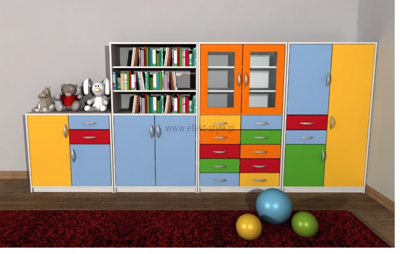 Element zestawu mebli przedszkolnych Gucio. Szafka wykonana jest z płyty laminowanej, fronty kolorowe. | |