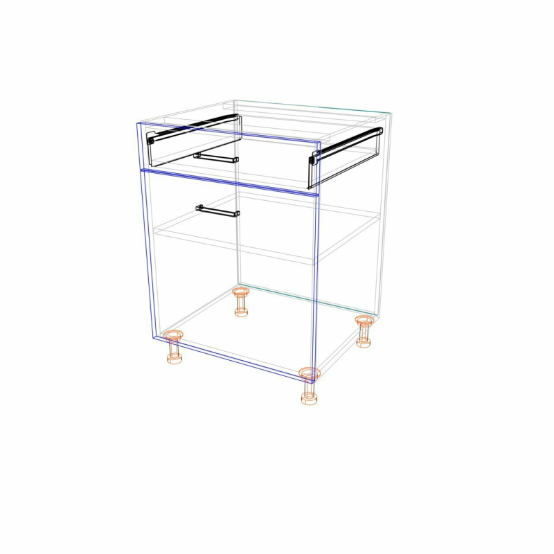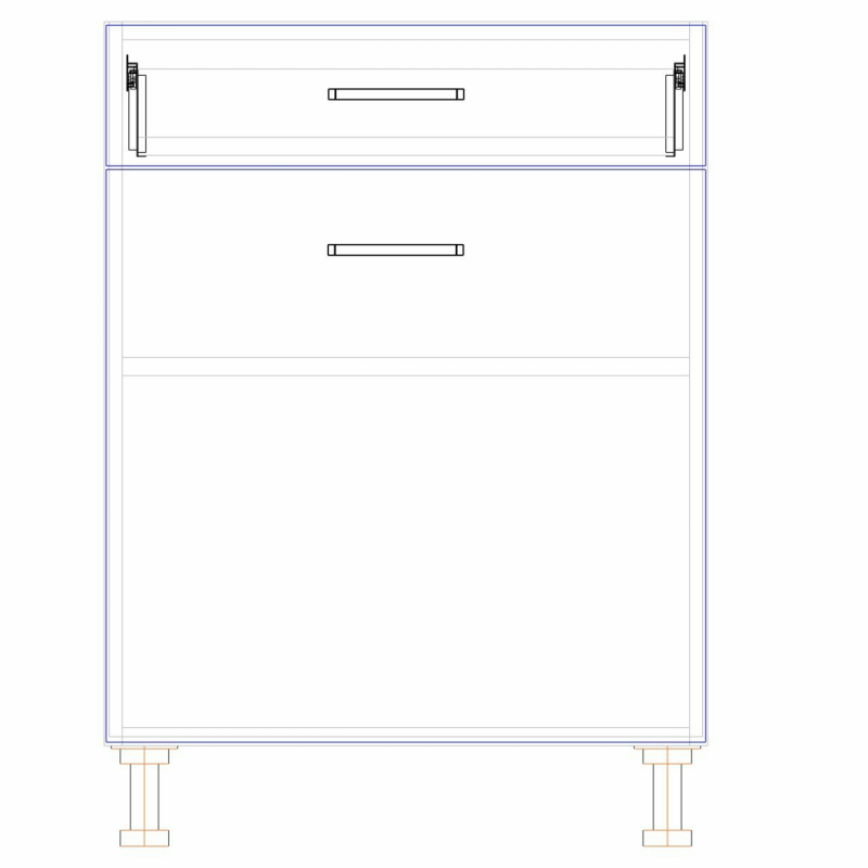 OPIS TECHNICZNY: | Górna część szafki to jedna szuflada, doskonała na sztućce, mniejsze akcesoria kuchenne lub przyprawy. Wewnątrz szafki znajduje się praktyczna półka. Uchwyt metalowy R1, 2-punktowy w rozstawie 128 mm. Stopki regulacyjne czarne. Zakres regulacji od 85 mm do 120 mm. |