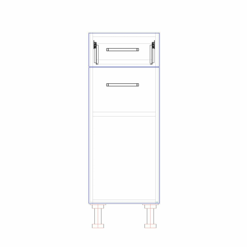 OPIS TECHNICZNY: | Górna część szafki to jedna szuflada, doskonała na sztućce, mniejsze akcesoria kuchenne lub przyprawy. Wewnątrz szafki znajduje się praktyczna półka. Uchwyt metalowy R1, 2-punktowy w rozstawie 128 mm. Stopki regulacyjne czarne. Zakres regulacji od 85 mm do 120 mm. |