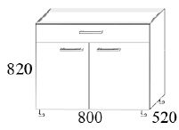 OPIS TECHNICZNY: | Górna część szafki to jedna szuflada, doskonała na sztućce, mniejsze akcesoria kuchenne lub przyprawy. Wewnątrz szafki znajduje się praktyczna półka. Uchwyt metalowy R1, 2-punktowy w rozstawie 128 mm. Stopki regulacyjne czarne. Zakres regulacji od 85 mm do 120 mm. |