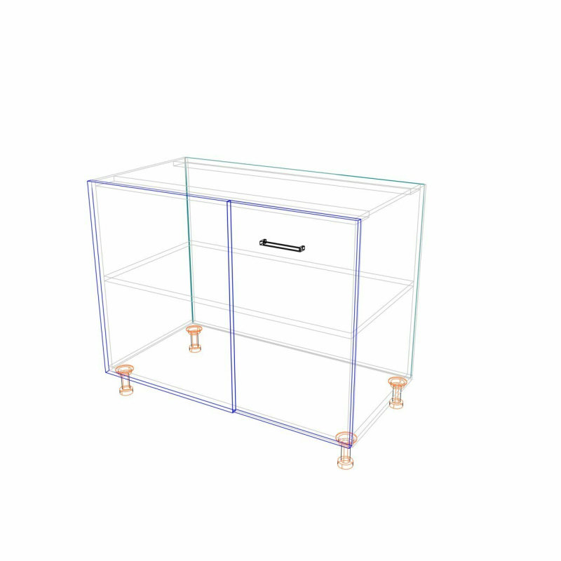OPIS TECHNICZNY: | Szafka narożna MKS18 to rozwiązanie do zagospodarowania przestrzeni w rogu kuchni, która w innym przypadku często pozostaje niewykorzystana. Front, korpus (boki szafki, wieniec dolny) wykonane z płyty 18 mm melaminowanej, widoczne krawędzie oklejone PCV 2 mm. Uchwyt metalowy R1, 2-punktowy w rozstawie 128 mm. Stopki regulacyjne czarne. Zakres regulacji od 85 mm do 120 mm. |