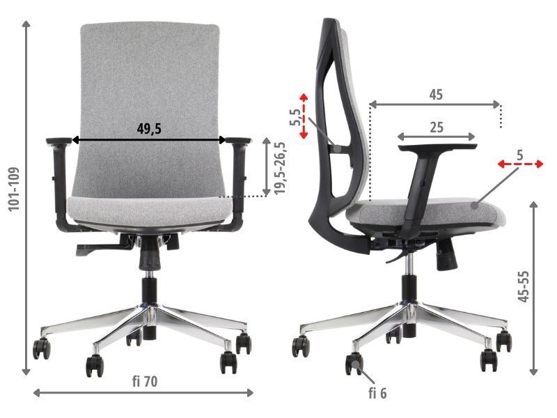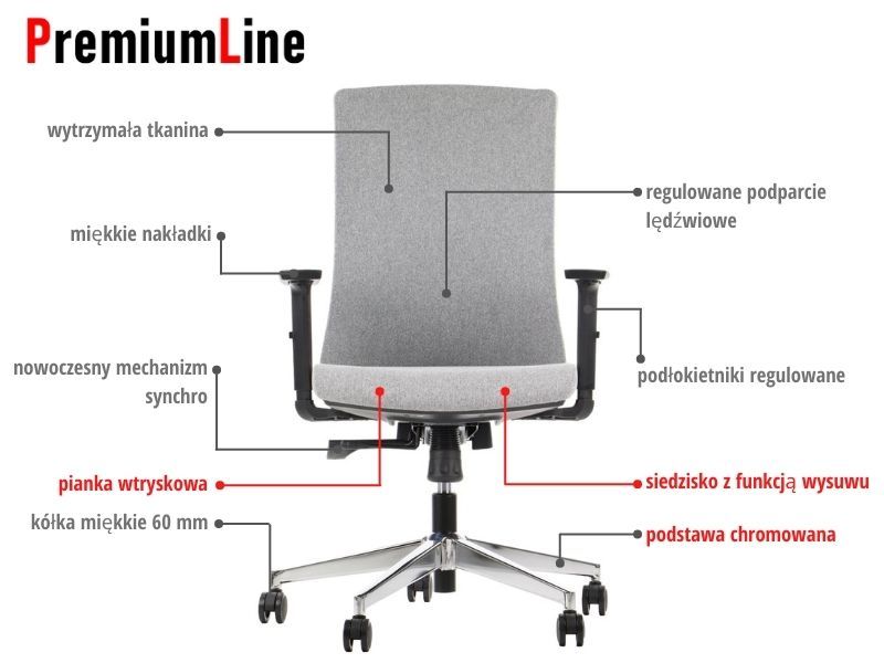 | Mechanizm fotela: | synchroniczny podstawowy, synchroniczny z wysuwem siedziska |