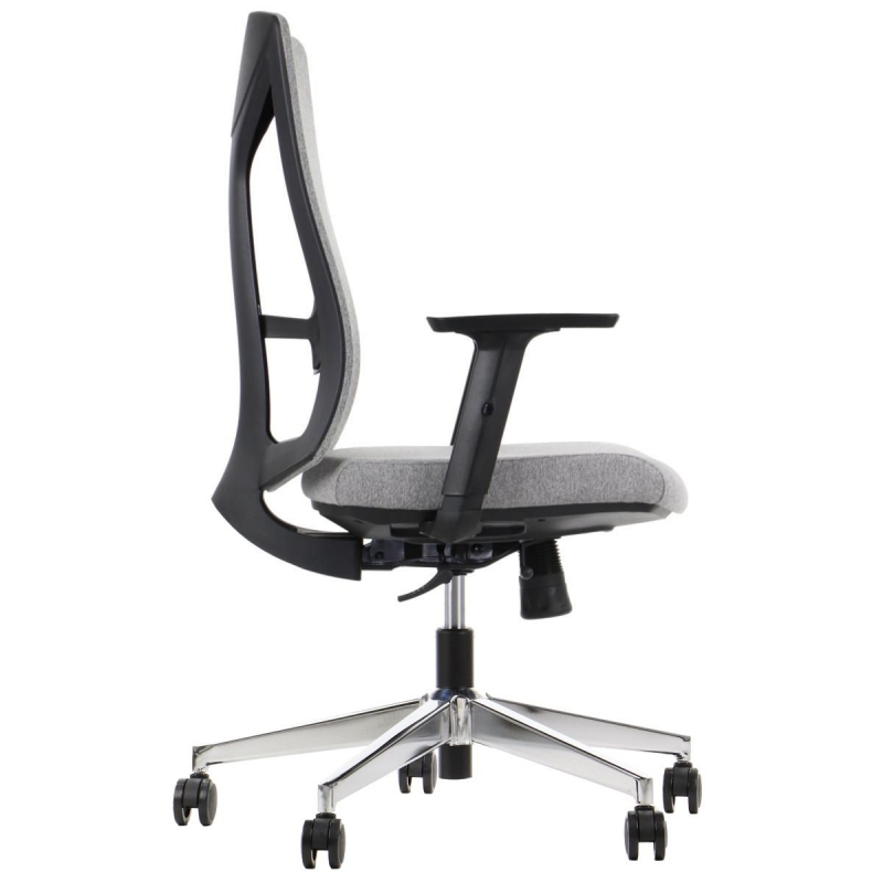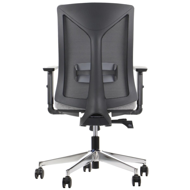 Fotel biurowy ERGOFIX TM06 szary Mechanizm Synchroniczny mechanizm ruchowy (Synchro SELF). Po zwolnieniu blokady, oparcie wychyla się w ruchu synchronicznym z siedziskiem naśladując ruch użytkownika w krześle. Wychylenie oparcia podążające za ruchem pleców użytkownika jest znacznie wyraźniejsze i szybsze aniżeli ruch siedziska. Siła oporu jaki stawia oparcie podczas wychylenia jest automatycznie dobrana do wagi Użytkownika - to funkcja "SELF" mechanizmu Synchro. Użytkownik w każdej chwili ma również możliwość blokady wybranej pozycji wychylenia oparcia i siedziska poprzez ruch dźwigni umieszczonej pod siedziskiem. Funkcja ANTI-Shock zapobiega gwałtownemu uderzeniu oparcia w plecy Użytkownika po zwolnieniu wybranej pozycji wychylenia. Siedzisko Tapicerowane tkaniną TM, która jest miła w dotyku, oddychająca, odporna na peeling i ścieralność ponad 35 tyś cykli Martindalea. Tkanina zapewnia dobra cyrkulację powietrza, jest łatwa w utrzymaniu czystości. Kolor tapicerki - szary. Oparcie Tapicerowane jest siatką, która dobrze dopasowuje się do pleców Użytkownika i zapewnia odpowiednią cyrkulację powietrze. Kolor siatki - szary. Wyposażone: w profil lędźwiowy o regulowanej wysokości, zagłówek o regulowanym kącie położenia, który pozwala na ergonomiczne podparcie głowy podczas pracy. Podłokietniki Regulowane w trzech płaszczyznach (3D): góra dół: pozwala na dostosowanie jego wysokości tak aby przedramię ułożone było pod kątem 90 stopni do tułowia, co znacznie odciąża mięśnie pleców podczas długiej pracy w pozycji siedzącej. Zakres regulacji wysokości podłokietnika to 6 cm; kąt położenia nakładki w zakresie +/- 15 stopni (skierowanie nakładek do wewnątrz siedziska ułatwia pisanie na klawiaturze, zaś ich skierowanie na zewnątrz ułatwia swobodne wstawanie z krzesła); przód - tył: regulacja nakładki podłokietnika przód/tył pozwala dostosować go do długości przedramienia; Podstawa Pięcioramienna czarna - nylonowa podstawa jezdna o lekkiej nowoczesnej stylistyce. Kółka miękkie: do powierzchni twardych tj. panele, glazura Wymiary Atest Atest Wytrzymałości i Bezpieczeństwa Użytkowania wydany przez PUR Remodex Zakład Badań i Wdrożeń Przemysłu Meblarskiego. Sposób przeprowadzenia badań wg: PN-EN 1335-1:2004 PN-EN 1335-2:2009 PN-EN 1335-3:2009 Zgodnie z atestem: ,,UWAGA: dopuszczalne maksymalne obciążenie siedziska - 150 kg". Gwarancja 24 miesiące.
