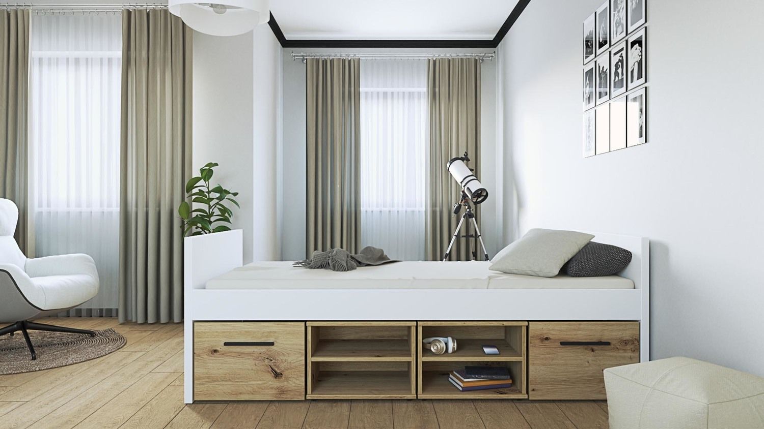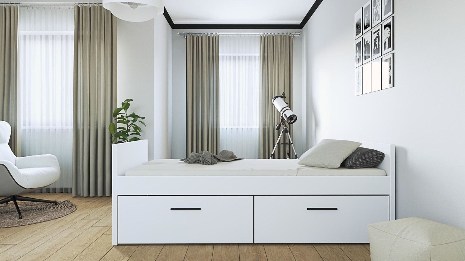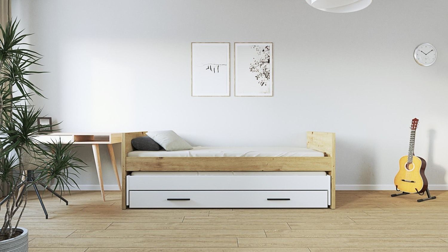 VERSO 1S/2 szuflada (moduł) białyZyskaj dodatkową przestrzeń do przechowywania dzięki szufladzie VERSO, idealnie dopasowanej do łóżek z systemu VERSO. Ten praktyczny moduł na kółkach pozwala w pełni wykorzystać miejsce pod łóżkiem, oferując dyskretne i łatwo dostępne schowki na pościel, ubrania, zabawki lub inne przedmioty. Szuflada, w modnym kolorze białym, jest wykonana z trwałej płyty meblowej laminowanej, co gwarantuje jej stabilność i odporność na codzienne użytkowanie. Dzięki zamontowanym kółkom, możesz swobodnie wysuwać i wsuwać szufladę, zachowując porządek w sypialni. Specyfikacja techniczna:
