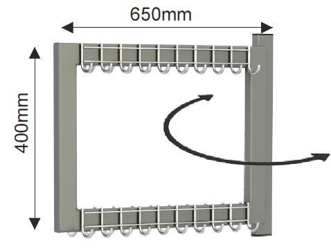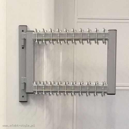 Wieszak mocowany do ściany, składany. Wieszak wyposażony jest w 40 haczyków ( po 20 po każdej stronie). | |