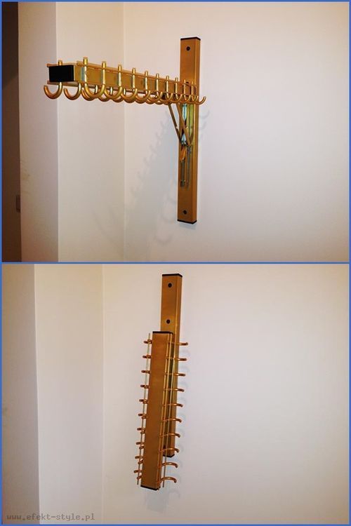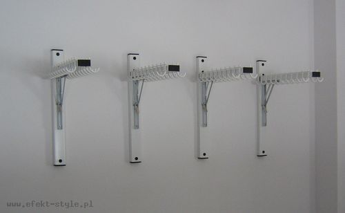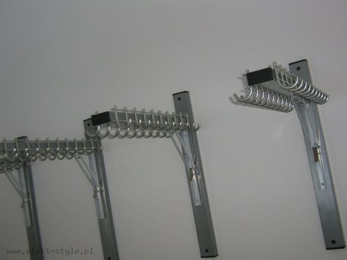 Wieszak mocowany do ściany, składany. Wieszak wyposażony jest w 20 haczyków ( po 10 po każdej stronie). | |
