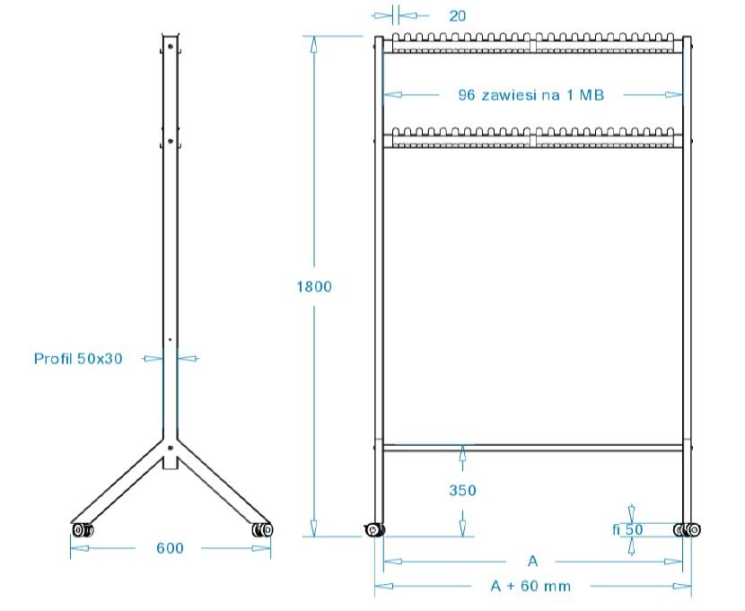 Wieszak szatniowy Y15 Towar na zamówienie: 2-5 tygodni. Koszty dostawy wg Indywidualnej Kalkulacji INFORMACJA---> sklep@efekt-style.pl lub 518 746 929 Wieszak Y15 Wieszak szatniowy z 40 hakami i miejscem na parasole. Kolor metalik lub czarny. Wieszak na stopkach lub kółkach. Długość wieszaka / rozstaw haków: - 1000mm rozstaw haków 50mm, - 1500mm rozstaw haków 75mm. Kolor Do wyboru: czarny metalik Wymiary Gwarancja 24 miesiące