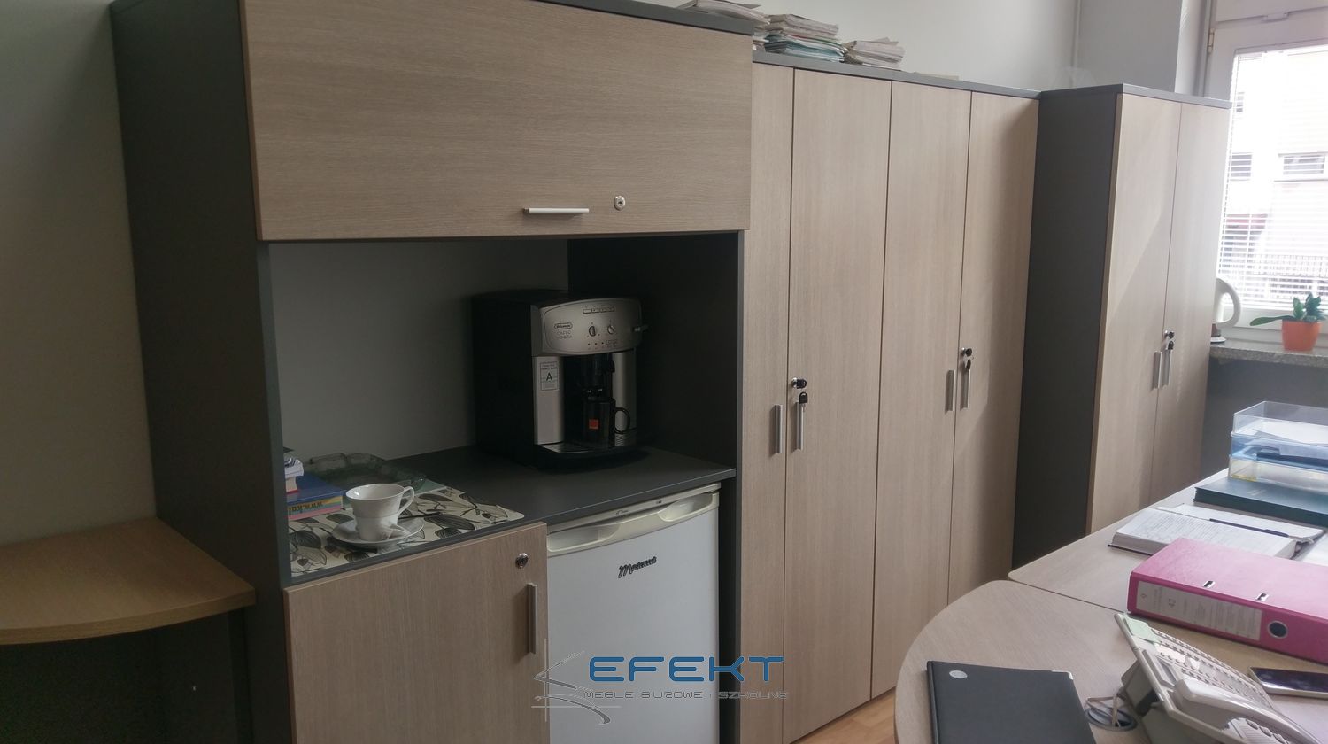Połączenie stylu klasycznego jakim są fotele oraz nowoczesnej lady w nowoczesnym kolorze grafitowym oraz płyty drewnopodobnej nadało bardzo ciekawego wyglądu temu pomieszczeniu, które przez wiele lat wyposażone było w "zabytkowe meble" Ta realizacja miała miejsce w Polkowicach w roku ubiegłym.