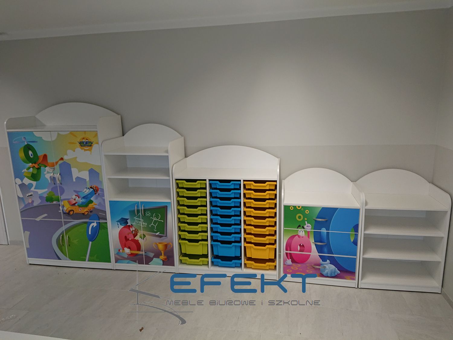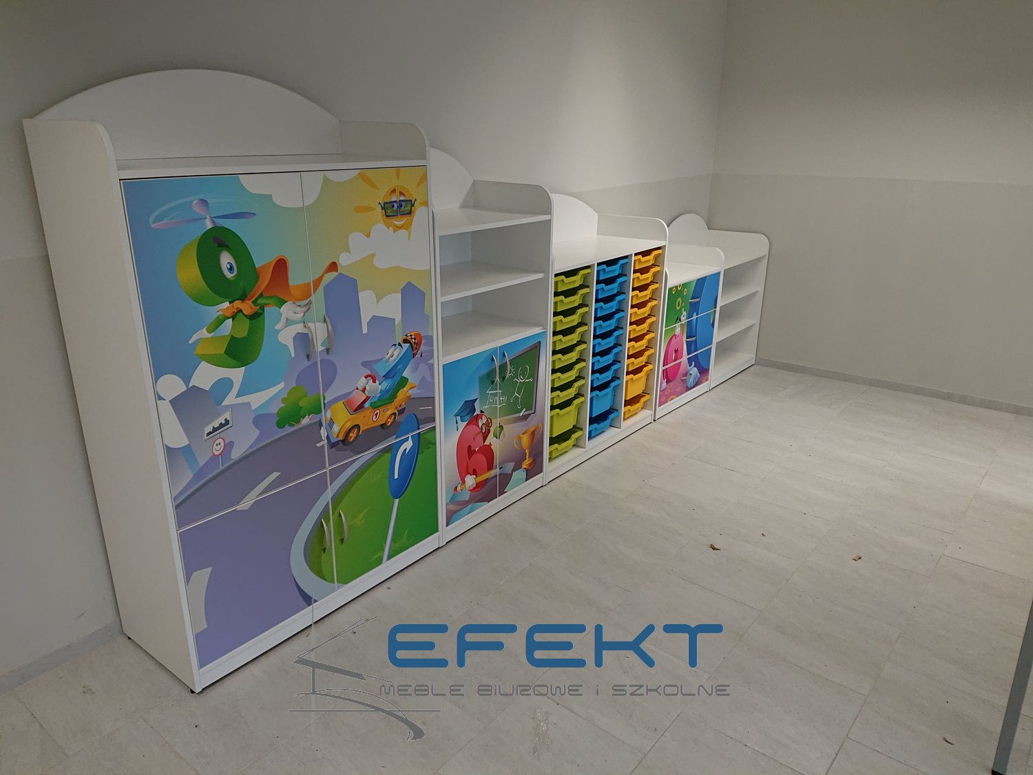 Kolorowe szafki przedszkolne z nadrukiem UV. Foto w trakcie montażu i meble jeszcze nie zostały ustawione, ale prezentują się niezwykle pięknie. Bajkowy nadruk na szafkach bardzo podoba się dzieciom jak również nauczycielom. W te śliczne szafki i wyprofilowane krzesła wyposażaliśmy przedszkole w Szlichtyngowej. Podoba Ci się to wyposażenie? to zobacz na naszej stronie -----> https://www.efekt-style.pl/…/s…/173---MEBLEPRZEDSZKOLNE.html