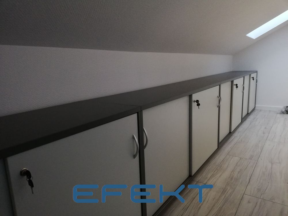 Miło nam, jak klient wraca :). Po zmianie siedziby wyposażyliśmy u naszego Klienta w Legnicy nowe biuro. Dostawa i montaż obejmowała nowoczesne meble, takie jak: biurka pracownicze z przegrodami oddzielajacymi pracowników, szafki aktowe z drzwiami przesuwnymi. Poniżej przedstawiamy dokumentację fotograficzną: