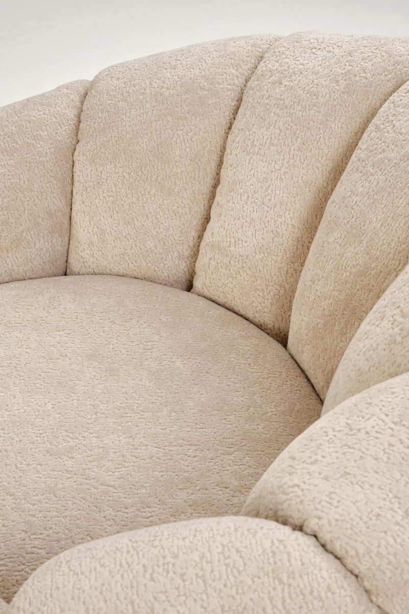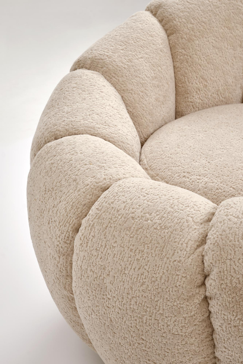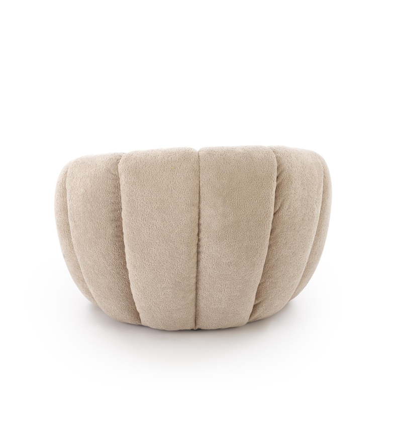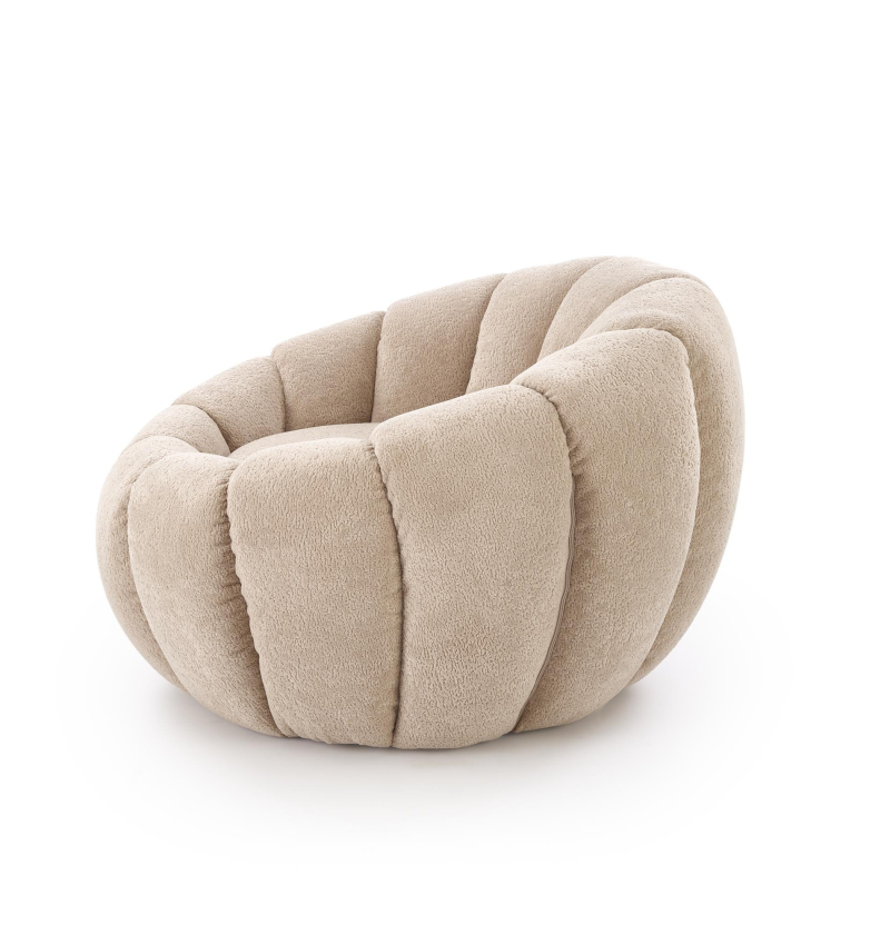 Fotel GASPAR wyróżnia się swoją organiczną formą, przypominającą miękką muszlę. Obity jest przyjemną w dotyku i wysokiej jakości tkaniną w subtelnym, beżowym odcieniu. Ten neutralny kolor sprawia, że fotel doskonale komponuje się z różnorodnymi aranżacjami wnętrz.