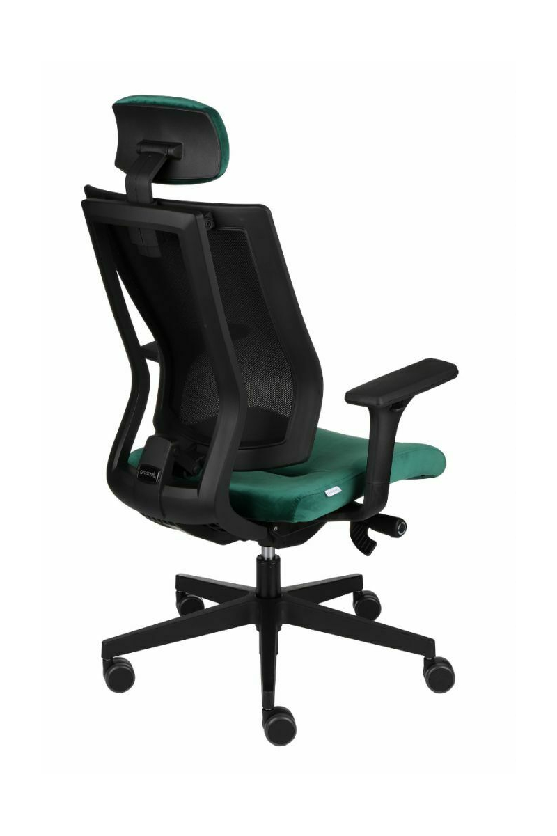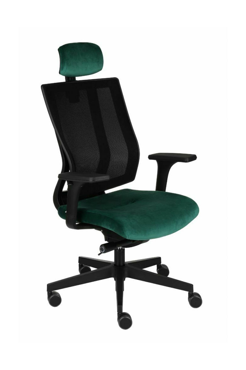 Wyposażony jest w mechanizm ruchowy Synchro Plus. Po zwolonieniu blokady wybranej pozycji, oparcie wychyla się w ruchu skoordynowanym z siedziskiem naśladując ruch Użytkownika w fotelu, gwarantując mu podparcie pleców w każdej pozycji.