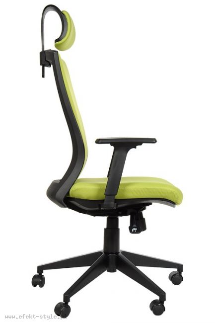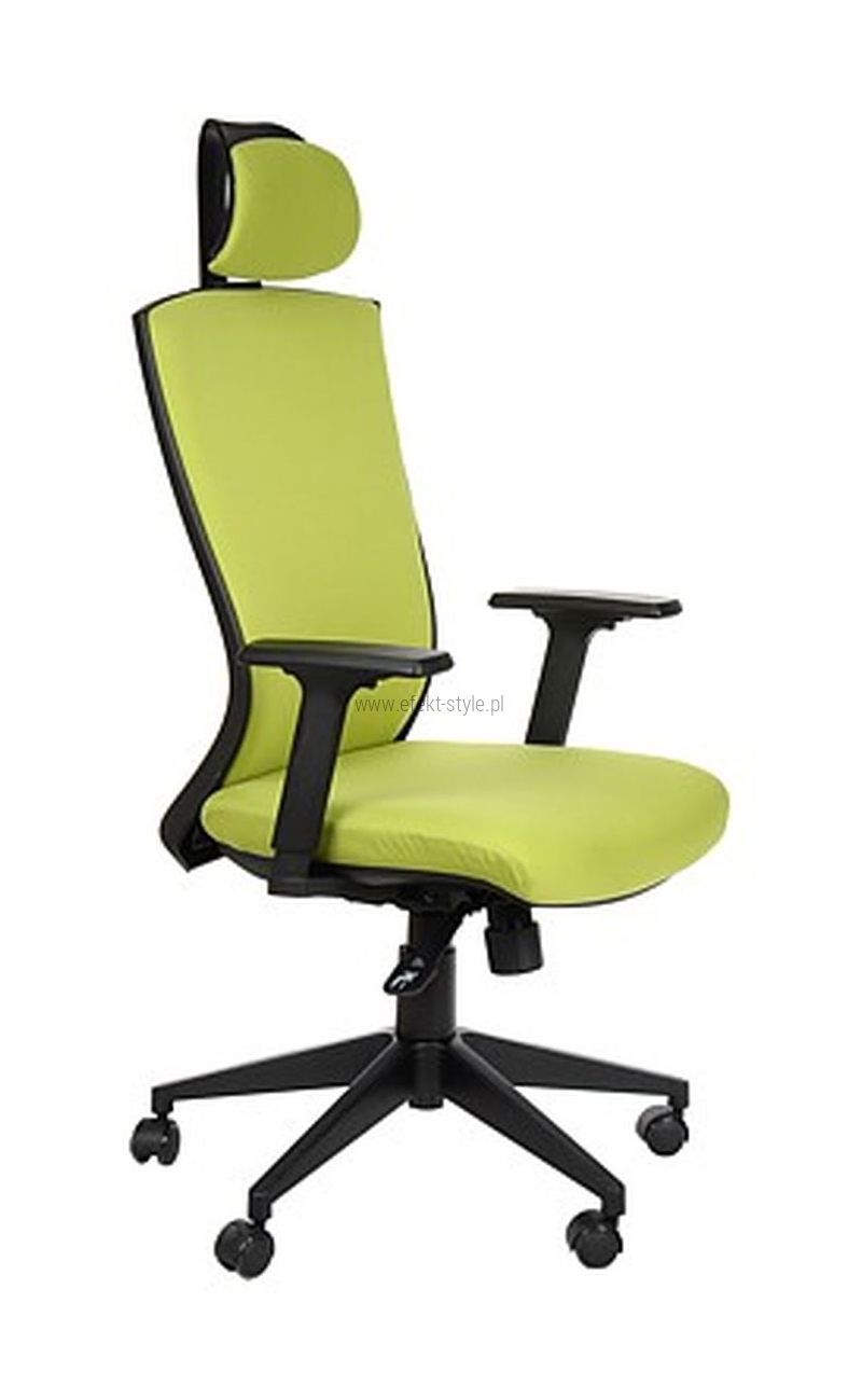 Fotel tapicerowany, wyposażony w mechanizm synchroniczny, regulowane podłokietniki oraz regulowany zagłówek.