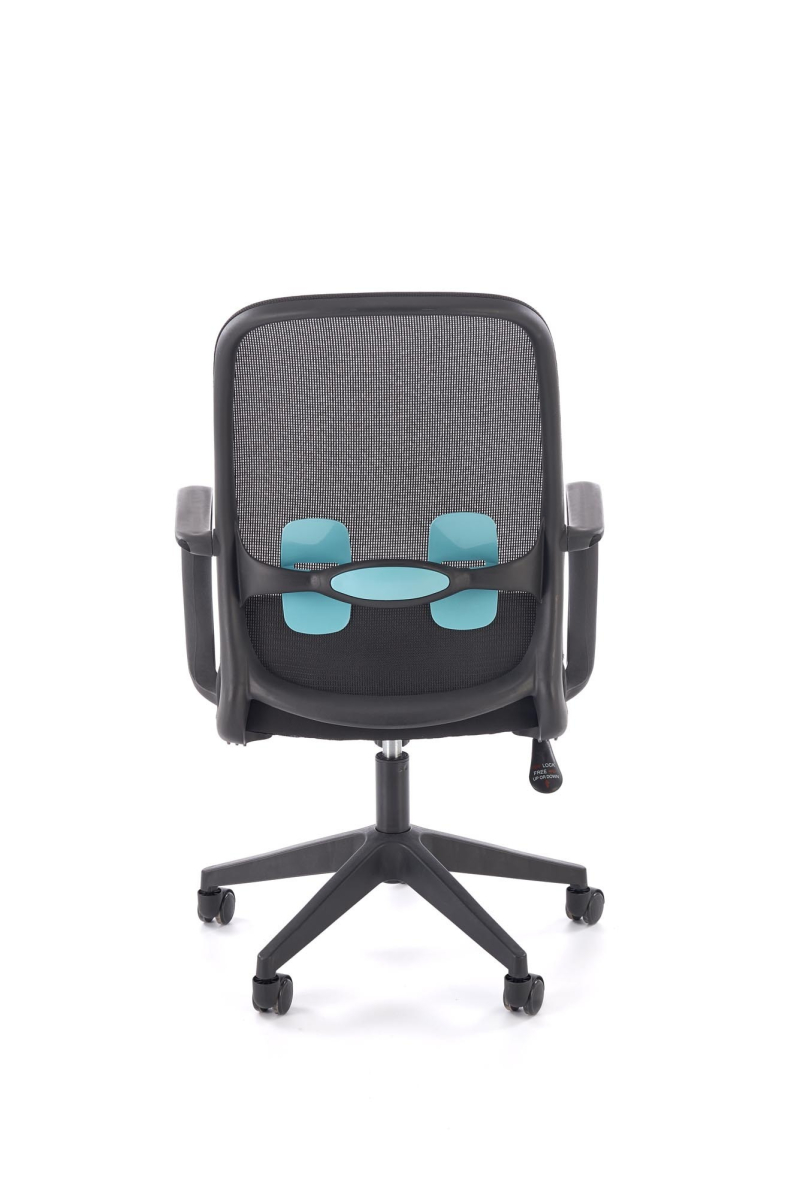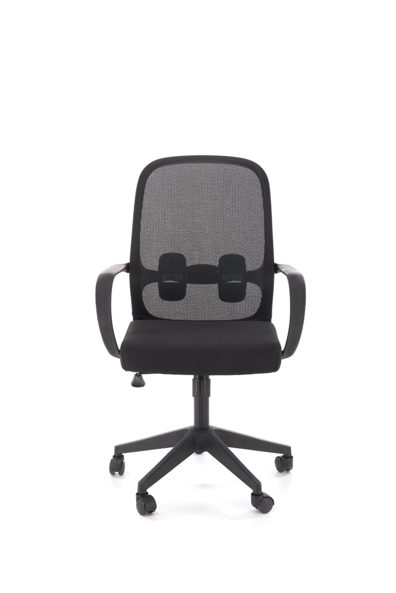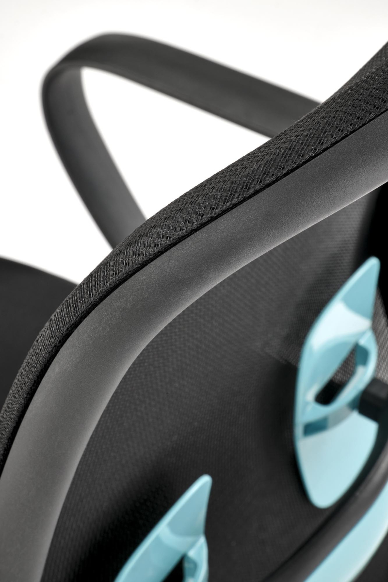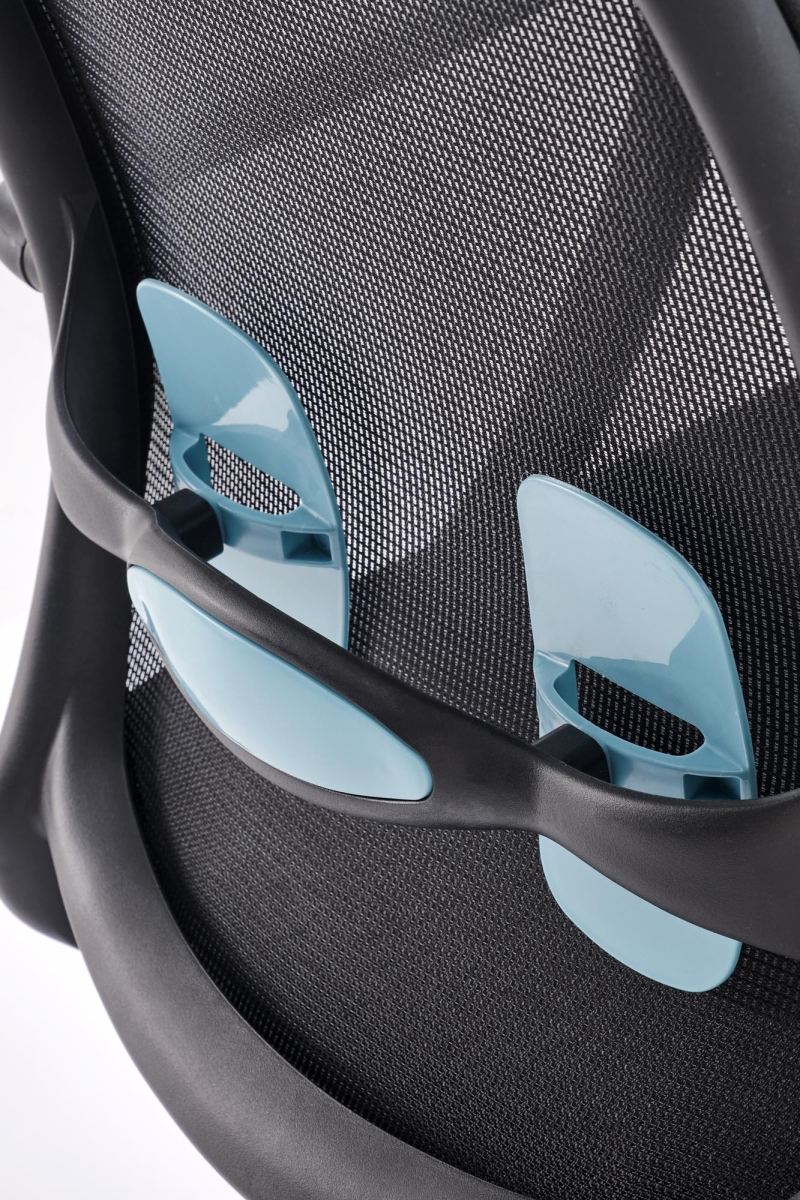 Fotel został wykonany z wysokiej jakości materiałów, łącząc tkaninę z nowoczesną siatką, co zapewnia nie tylko estetyczny wygląd, ale także doskonałą wentylację. Czarna kolorystyka fotela sprawia, że doskonale wpisuje się w różnorodne aranżacje wnętrz, od minimalistycznych po klasyczne. Idealnie nadaje się do pracy w biurze, ale także jako fotel do użytku domowego.